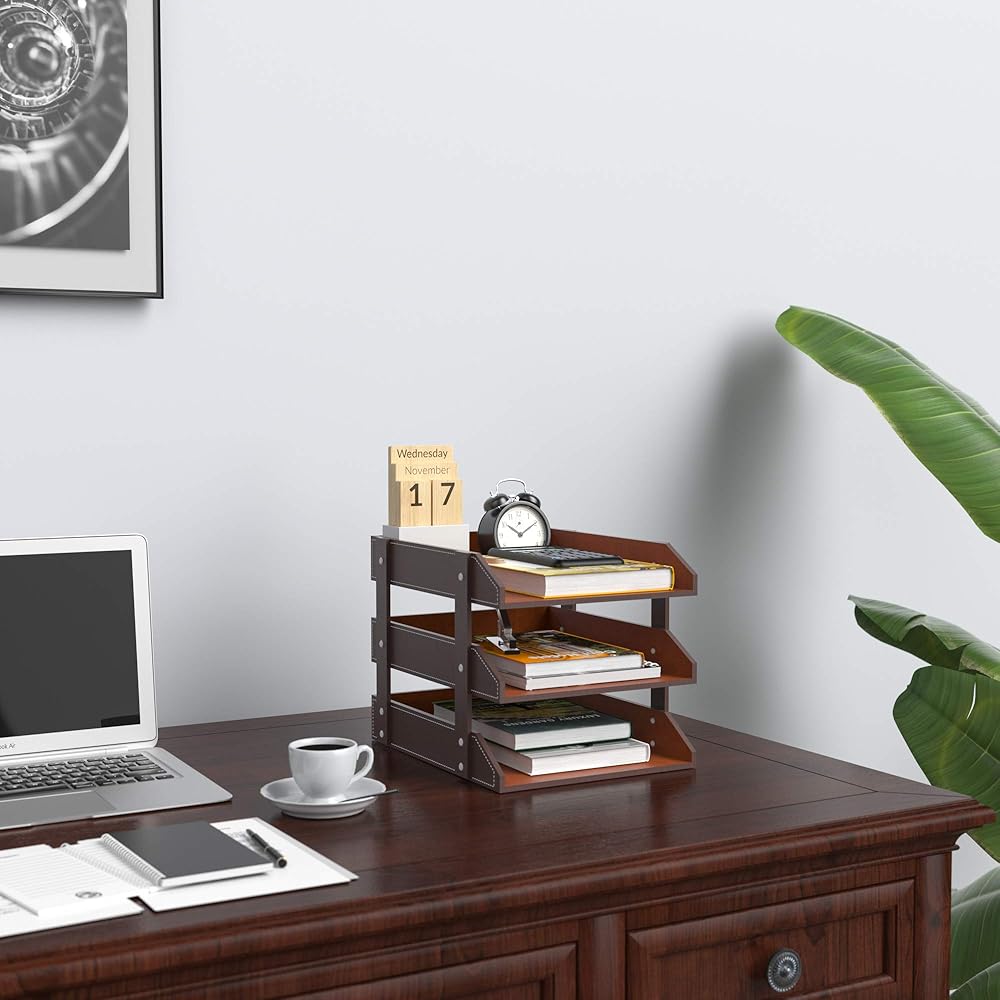 EXCELLENT DESIGN: Perfect 3 tier design, large space, it can keep your desktop neat and save lots of space. This letter sorter can easilly organize your office supplies, magazine, documents, printer papers, A4 file Paper, notebooks, stapler.