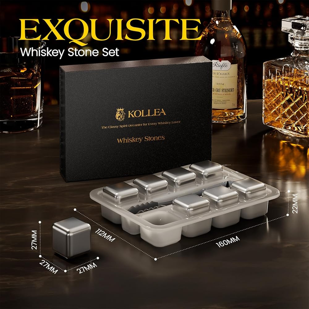 مجموعة أحجار ويسكي كوليا: مجموعة أحجار ويسكي كوليا عبارة عن مجموعة أحجار ويسكي عالية الجودة تأتي في 8 قطع من مكعبات الفولاذ المقاوم للصدأ، وملقط علوي من السيليكون مع صندوق هدايا أنيق. يمكنك أيضًا الحصول على ضمان استرداد الأموال لمدة 45 يومًا وضمان لمدة 24 شهرًا.