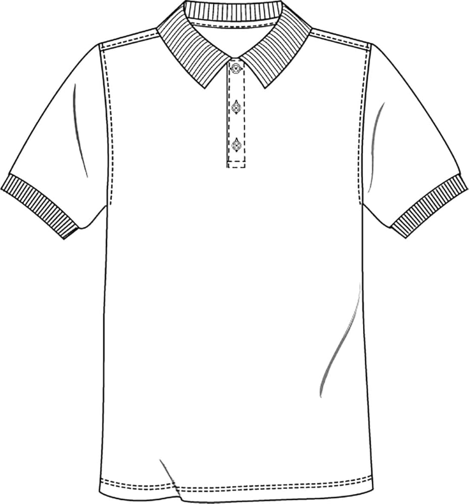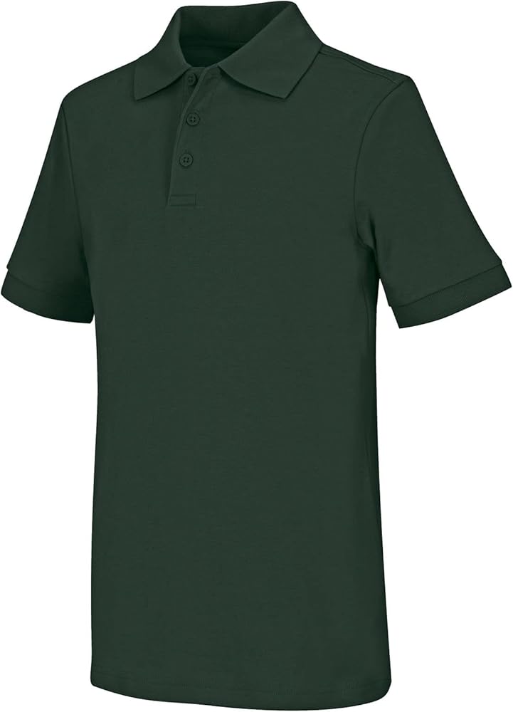 Unisex short sleeve interlock polo with matching rib knit collar and banded sleeve