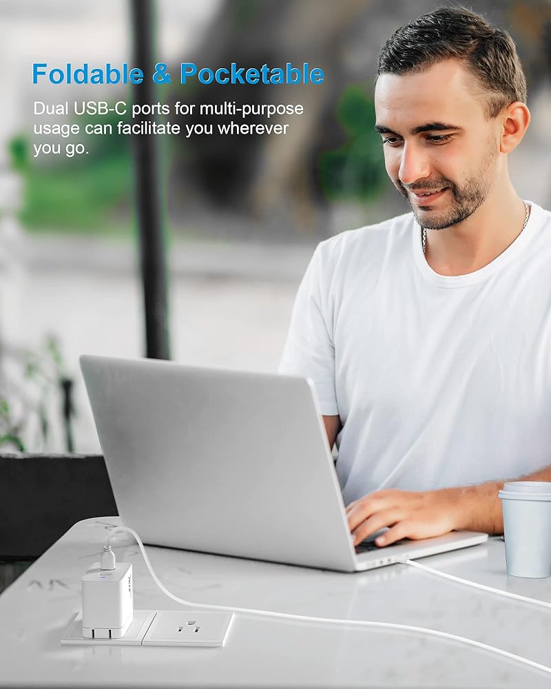 【منافذ USB مزدوجة من النوع C】اشحن iWatch وiPad الخاص بك بأقصى سرعة في نفس الوقت. تعمل شريحة موالف الطاقة على ضبط خرج الطاقة لحماية أجهزتك المتصلة وفقًا لأقصى قدر مقبول من الطاقة. اشحن جهازين في وقت واحد: بقوة 27 وات من منفذ USB-C و20 وات من الآخر