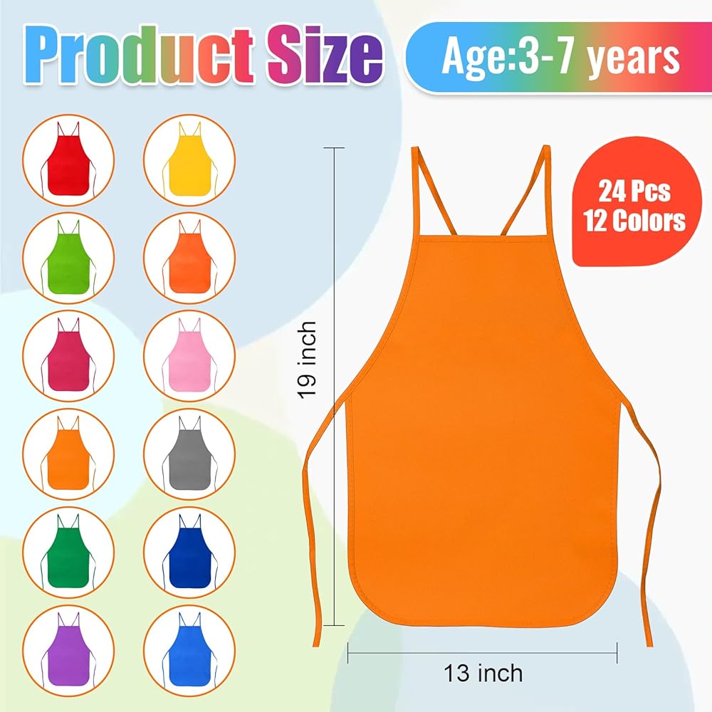 24 حزمة من مآزر الأطفال، 12 لونًا من مآزر القماش للفنانين للأطفال، مآزر رسم للأطفال للأعمار من 3 إلى 7 سنوات، مريلة أطفال فنية بكميات كبيرة للفصول الدراسية والمنزل والمطبخ ونشاط الرسم في المناسبات
