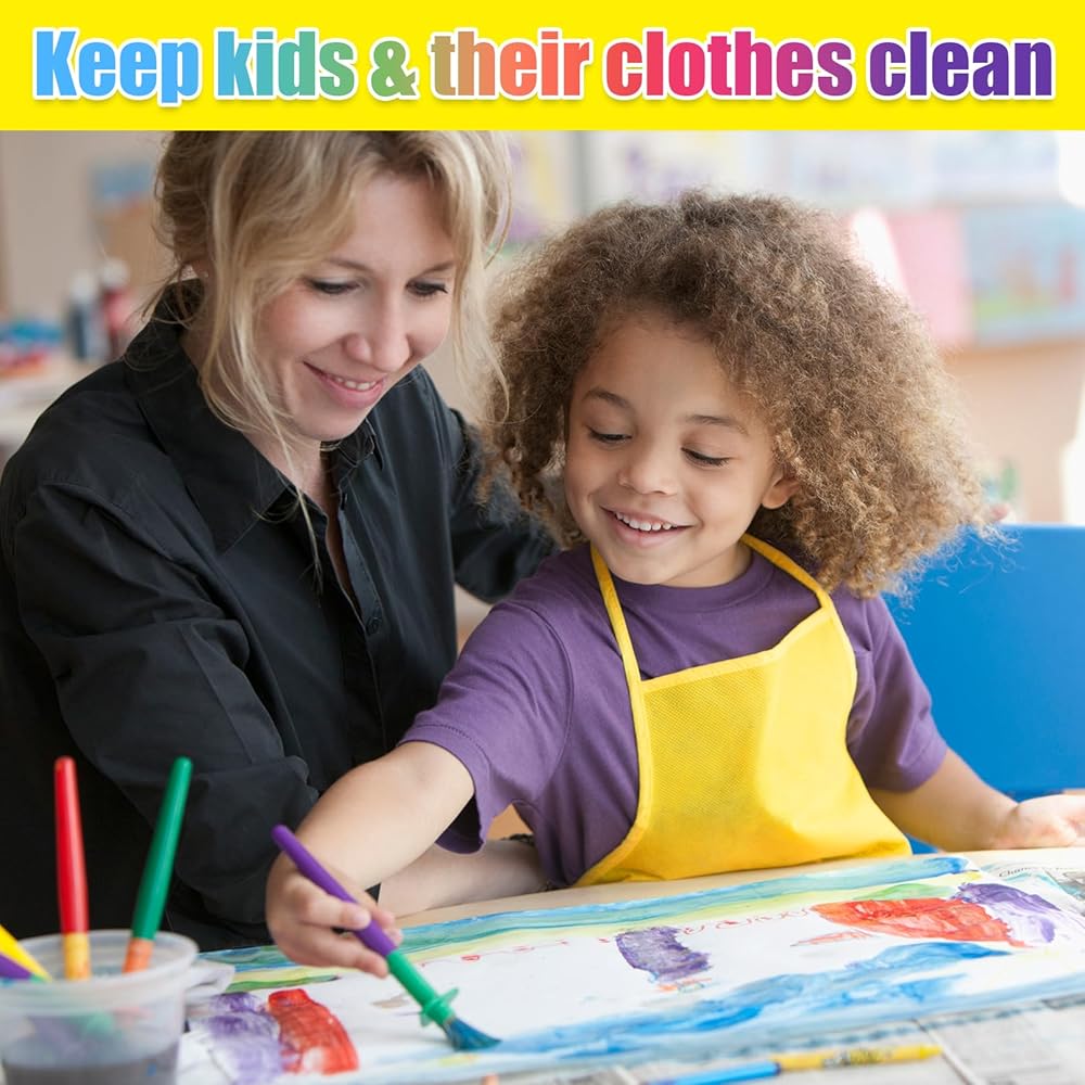 • 🎨عبوة مرايل الأطفال: تحتوي العبوة على 24 قطعة مريلة رسم للأطفال بـ 12 لونًا مشرقًا مختلفًا، كل لون يحتوي على قطعتين، يمكن للأطفال اختيار اللون الذي يحبونه.