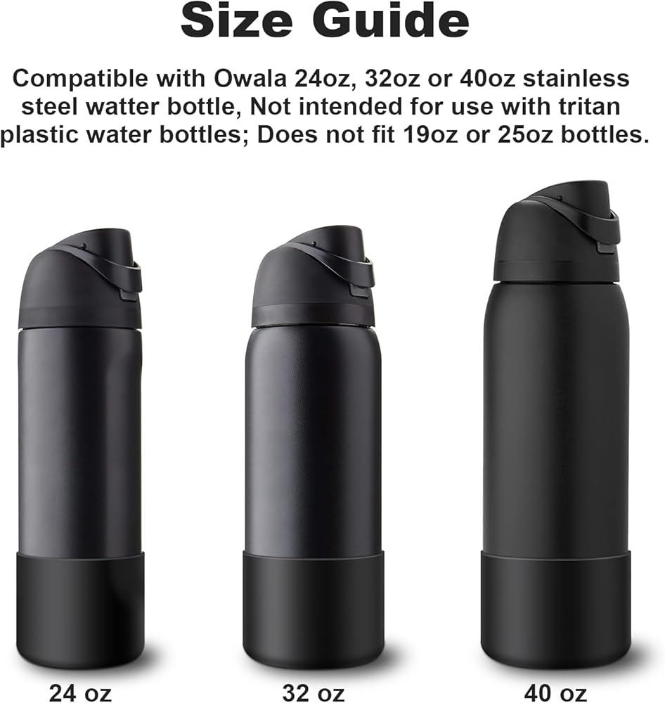 متوافق: تم تصميم غطاء الحذاء المصنوع من السيليكون من Youox خصيصًا لزجاجة مياه Owala بسعة 24oz، أو لزجاجات المياه Owala FreeSip أو Twist أو Flip؛ غير مخصص للاستخدام مع زجاجات المياه البلاستيكية التريتان؛ لا تناسب الزجاجات بوزن 19oz أو 25oz.