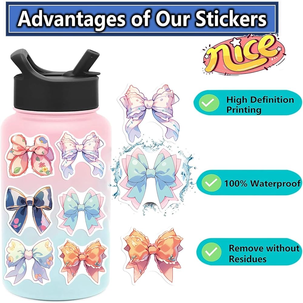 Stickers for water bottles, cups, mugs, computers, laptops, phones, skateboards, luggage, bumper, helmets, scrapbooks, mirrors, notebooks, diaries, snowboards, bicycles, cars, and anything you want to decorate.
