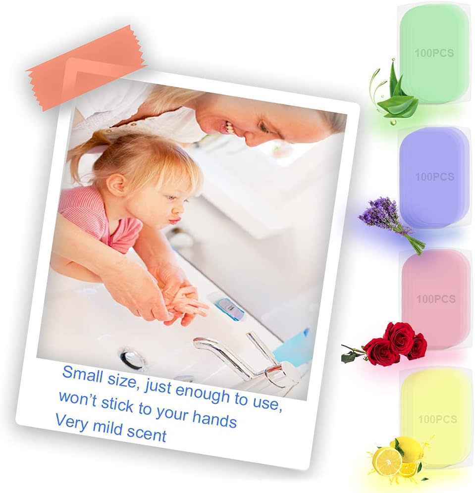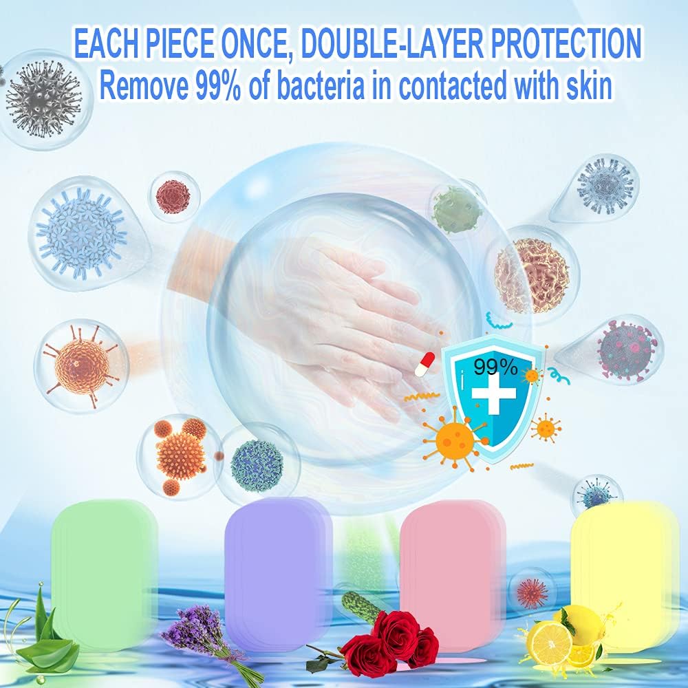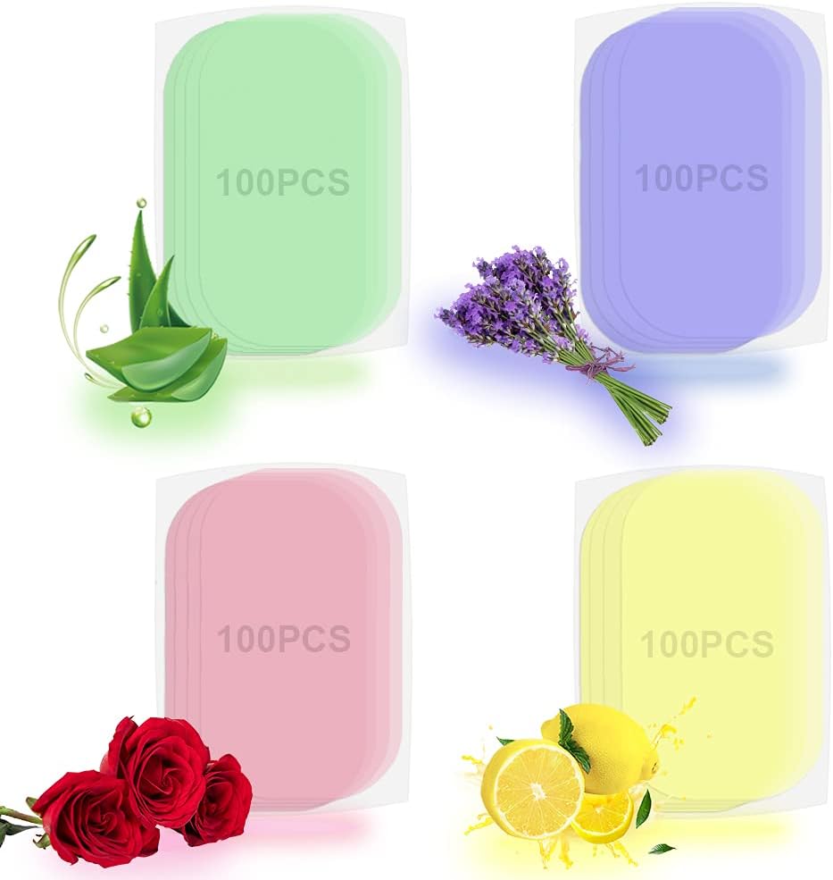 أقراص الصابون المعطرة باللافندر والورد والليمون والصبار: تتضمن 4 علب تحتوي على 50 قطعة من أوراق صابون السفر، يمكنك إعطاؤها للشخص الذي تحبه.