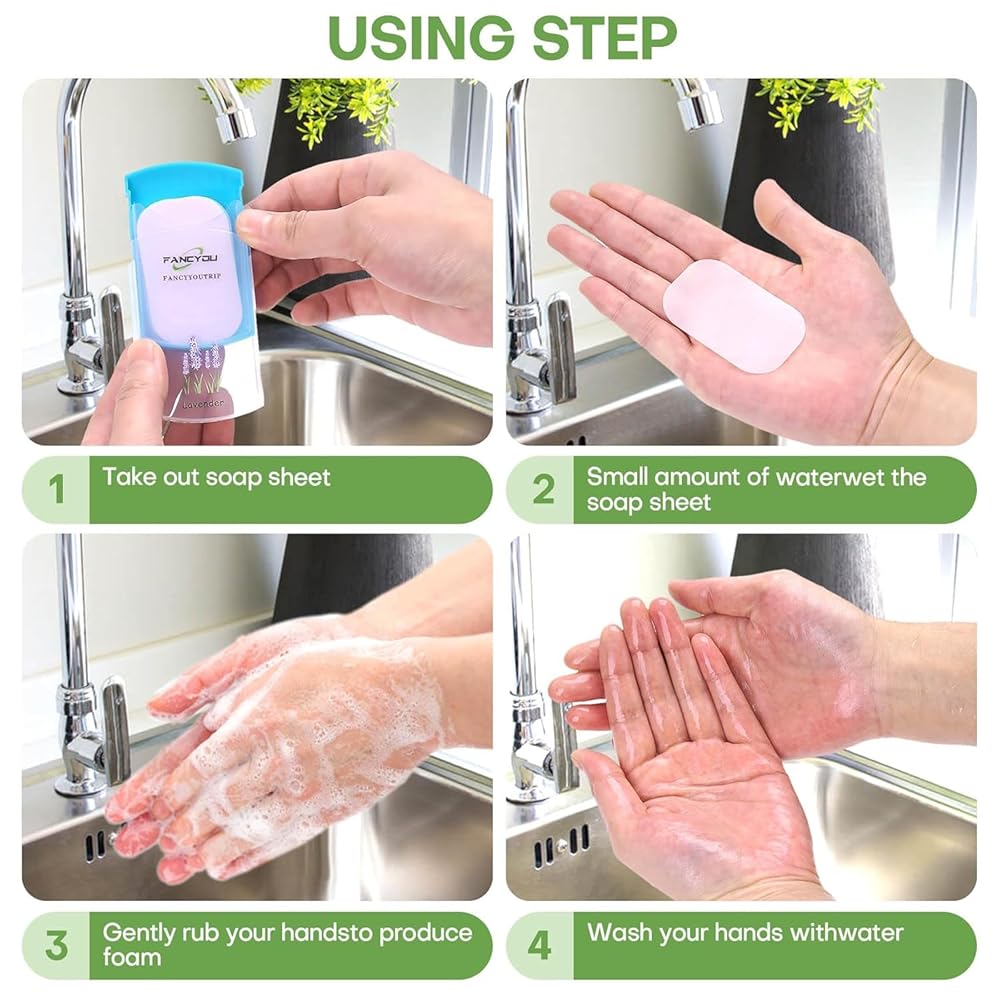 أوراق صابون السفر لغسل اليدين مصنوعة من مستخلصات نباتية نقية، يرجى التأكد من أن استخدام أوراق صابون السفر للأيدي آمنة ومناسبة لجميع أنواع البشرة ومناسبة للأطفال.