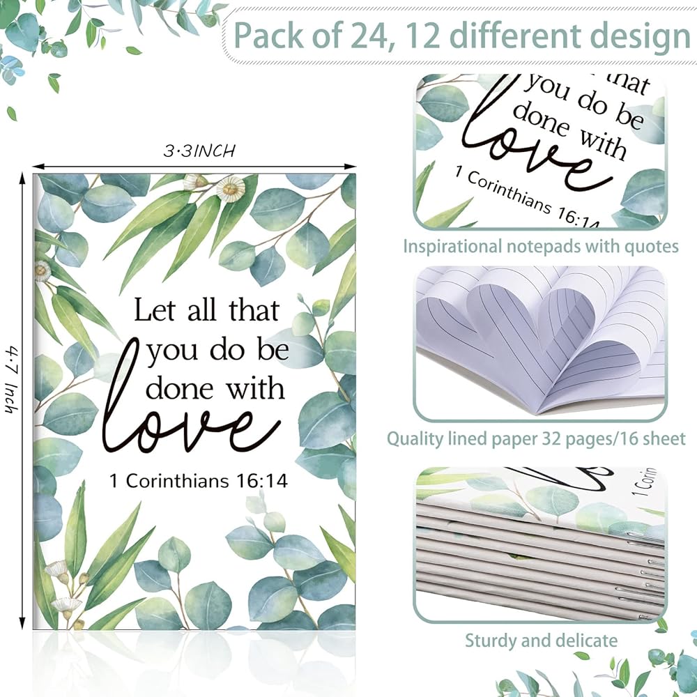 24 قطعة من المجلات المسيحية الصغيرة للنساء، دفاتر الملاحظات الدينية، هدايا السائبة من الكتاب المقدس، دفاتر الصلاة، لوازم الكنيسة المقدسة لهدايا عيد الأم، عائلة الكنيسة، 3.5 × 5 بوصة (ورقة خضراء)