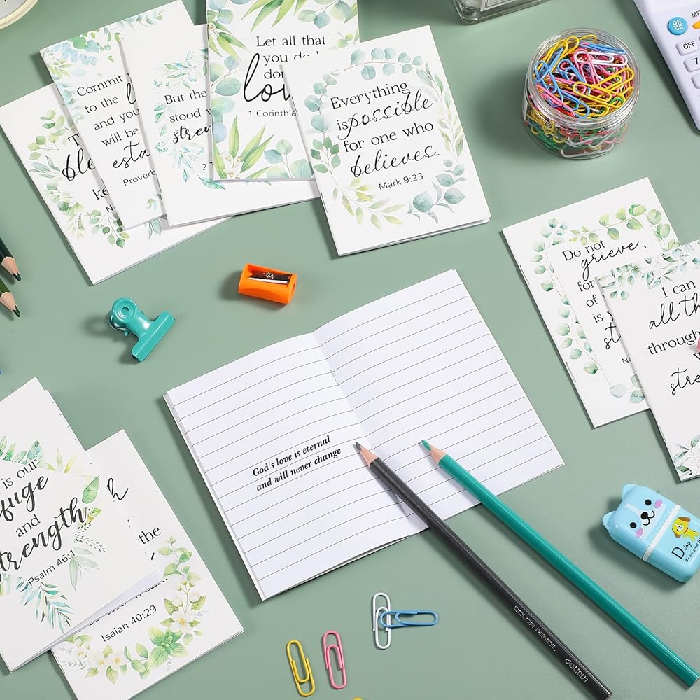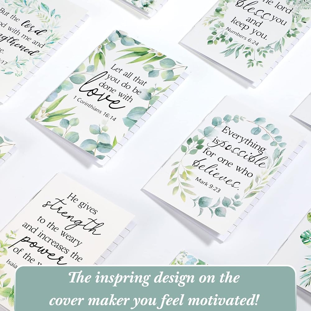 تصميم رائع: تحتوي دفاتر الملاحظات الدينية الصغيرة هذه على أغطية فنية جميلة، بما في ذلك أنماط مختلفة من الأوراق الخضراء بألوان مائية واقتباسات كتابية ملهمة؛ أثناء استخدام دفتر الملاحظات، سوف تحصل على الإلهام والتشجيع