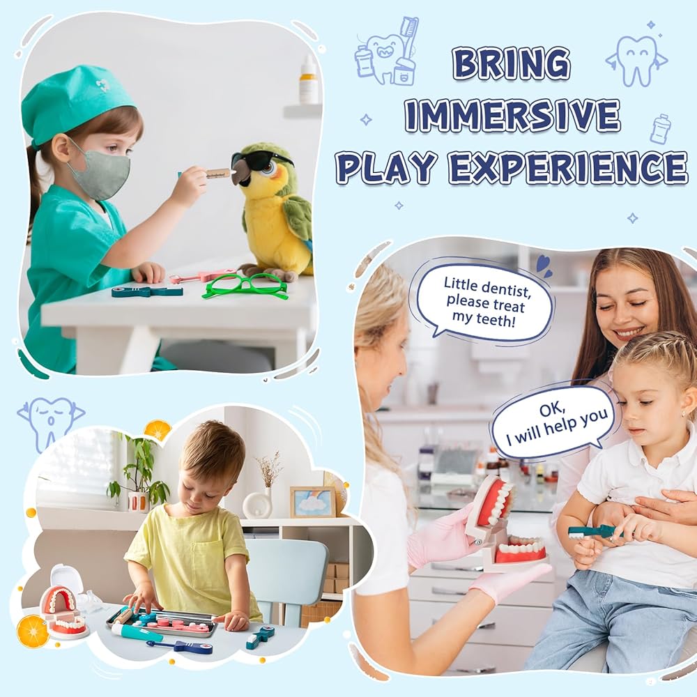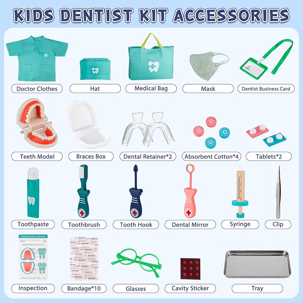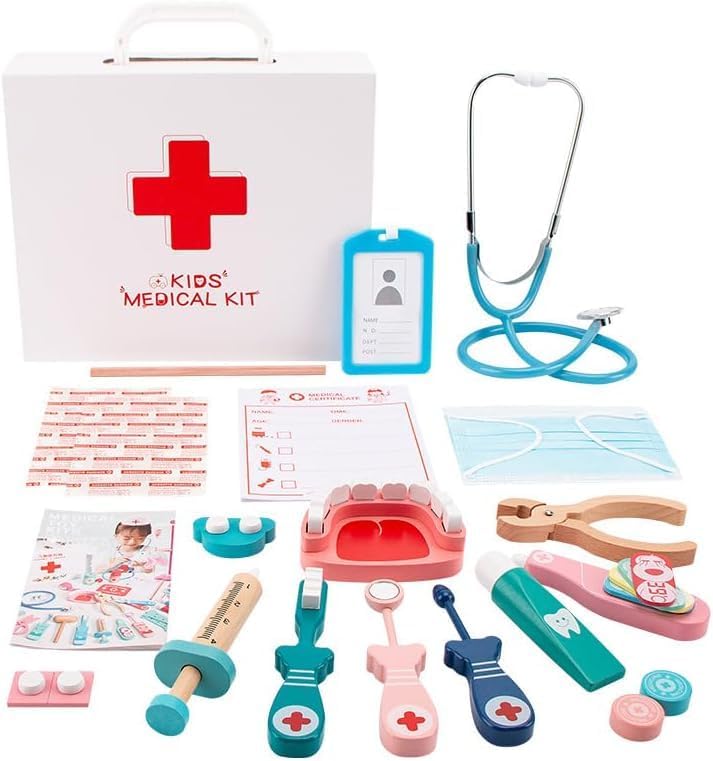 مجموعة طبيب الأطفال الآمنة والمتينة: تم تصميم هذه الأدوات للأيدي الصغيرة وسهلة الإمساك. جميعها مصنوعة من مواد بلاستيكية أكريلونتريل بوتادين ستايرين المتينة، وهي غير سامة وخالية من مادة BPA وخالية من الروائح. لا توجد أشياء حادة أو حواف لهذه الأدوات، لذلك لا داعي للقلق بشأن إيذاء الأطفال لأنفسهم أثناء اللعب.