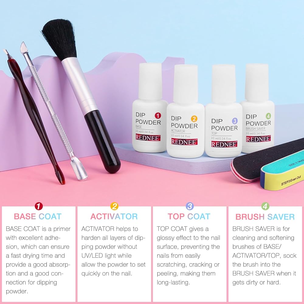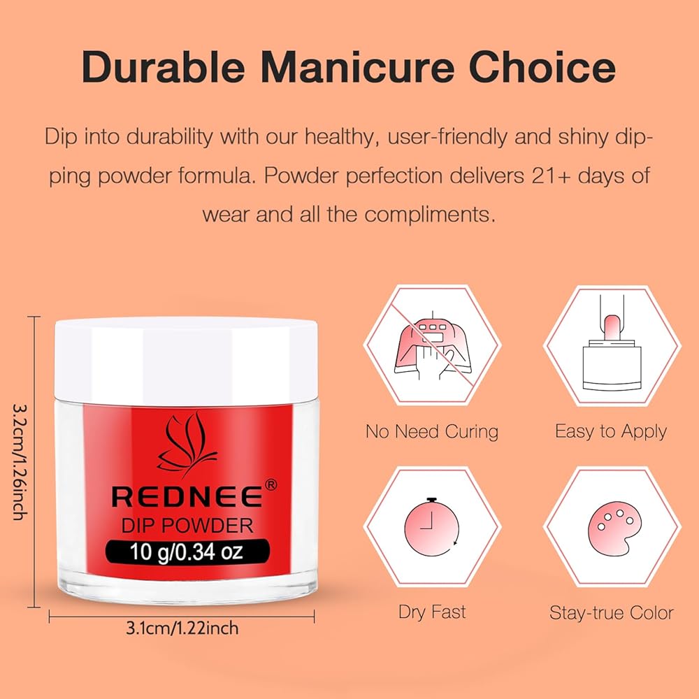 REDNEE 12 لونًا مجموعة أظافر غمس 21 قطعة من مجموعات المبتدئين للمبتدئين أو المحترفين، مع أدوات الأظافر الأساسية لمسحوق الغمس من السلسلة الحيوية والخطوة 1-4 سوائل غمس لا حاجة إلى مصباح للأشعة فوق البنفسجية RE40