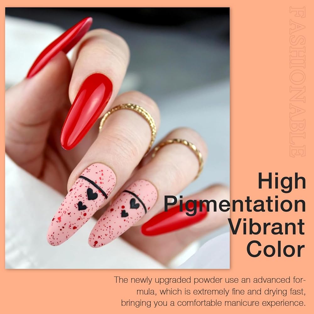 ابقِ عصريًا، واستمتع بالبهجة: ابق على الموضة مع مجموعتنا المختارة بعناية والتي تضم 12 لونًا مشهورًا. من اللون الأحمر الناري النابض بالحياة، والوردي الساخن الدرامي إلى الورد اللامع الآسر، توفر مجموعة غمس الأظافر متعددة الألوان هذه إمكانيات لا حدود لها لتصميمات فن الأظافر المذهلة. تعد مجموعة مسحوق الغمس الأنيقة هذه الخيار الأمثل للحفلات والنزهات وتجمعات الأصدقاء.