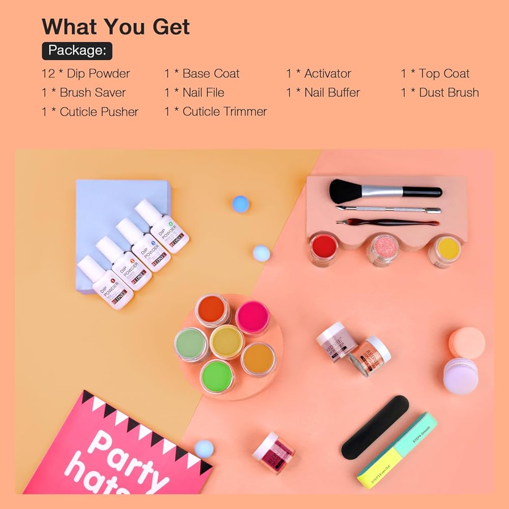 متعة الرسم: استمتع بالمتعة الخالصة مع مجموعة مسحوق الغمس من Painting Happiness. تشتمل مجموعة أدوات غمس الأظافر الكل في واحد على 12 برطمانًا من مسحوق الغمس عالي الجودة (10 جم/0.34 أونصة لكل منها)، بالإضافة إلى طبقة أساسية من الخطوة 1-4 ومنشط وطبقة علوية وحافظة للفرشاة (10 مل/0.34 أونصة سائلة لكل زجاجة) ) و5 ملحقات مانيكير. أطلق العنان لإبداعك وعبّر عن أسلوبك الفريد مع مجموعة البودرة الشاملة هذه.