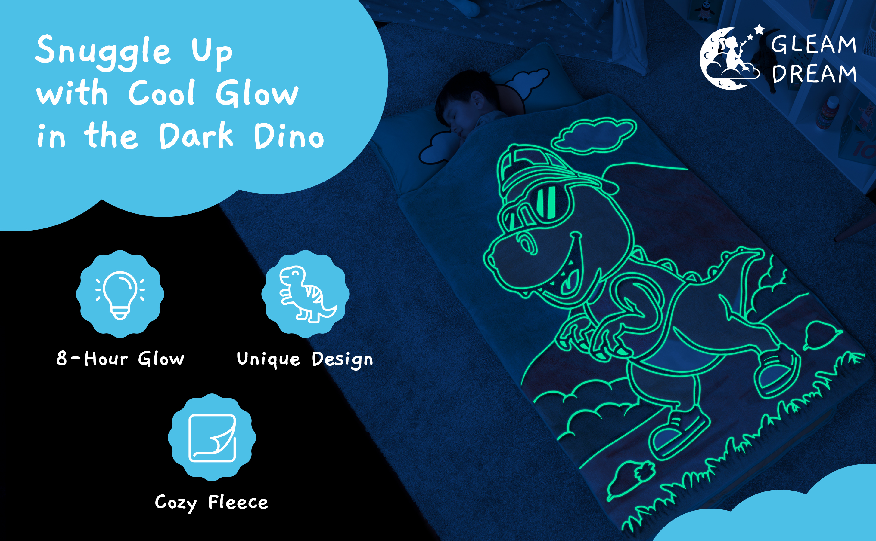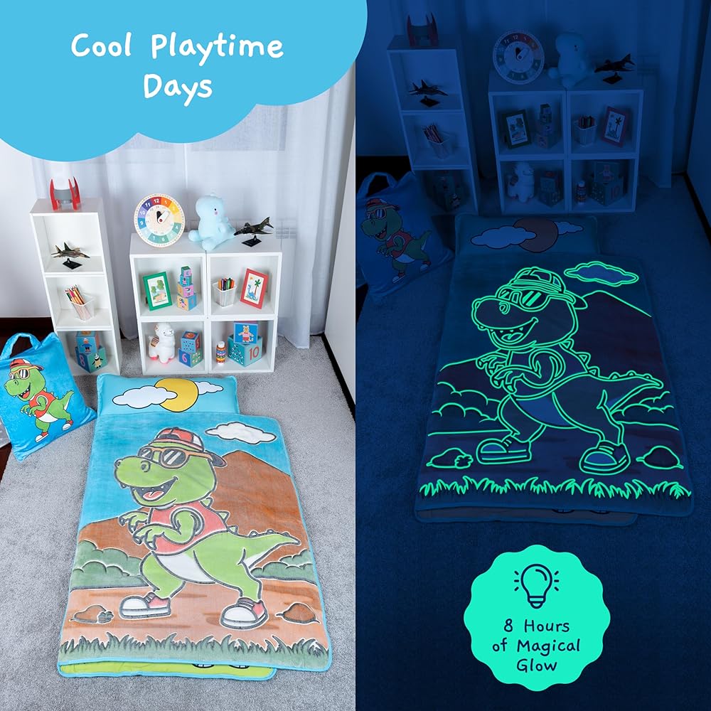 تتوهج في الظلام: قدِّم طفلك للعالم الساحر لسجادة القيلولة المتوهجة في الظلام، حيث تنشط سجادة القيلولة هذه على شكل ديناصور خلال ساعة واحدة من الضوء المباشر وتتوهج لمدة تصل إلى 8 ساعات. لا حاجة للبطارية.