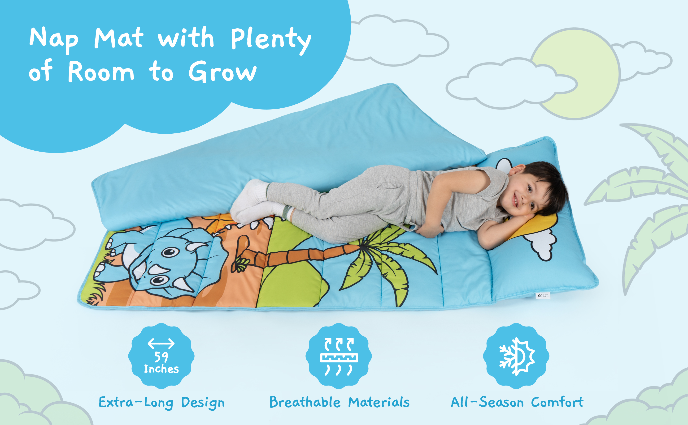 هدية للأولاد: تُعد سجادة القيلولة جليم دريم للأولاد الصغار هدية مثالية للمناسبات الخاصة. سواء كانت حقيبة نوم للأولاد لعيد الميلاد أو سجادة نوم للأطفال الصغار. شاهد طفلك الصغير ينجرف إلى أرض الأحلام مع سجادة القيلولة المريحة هذه لمرحلة ما قبل المدرسة.