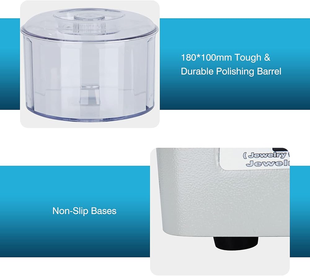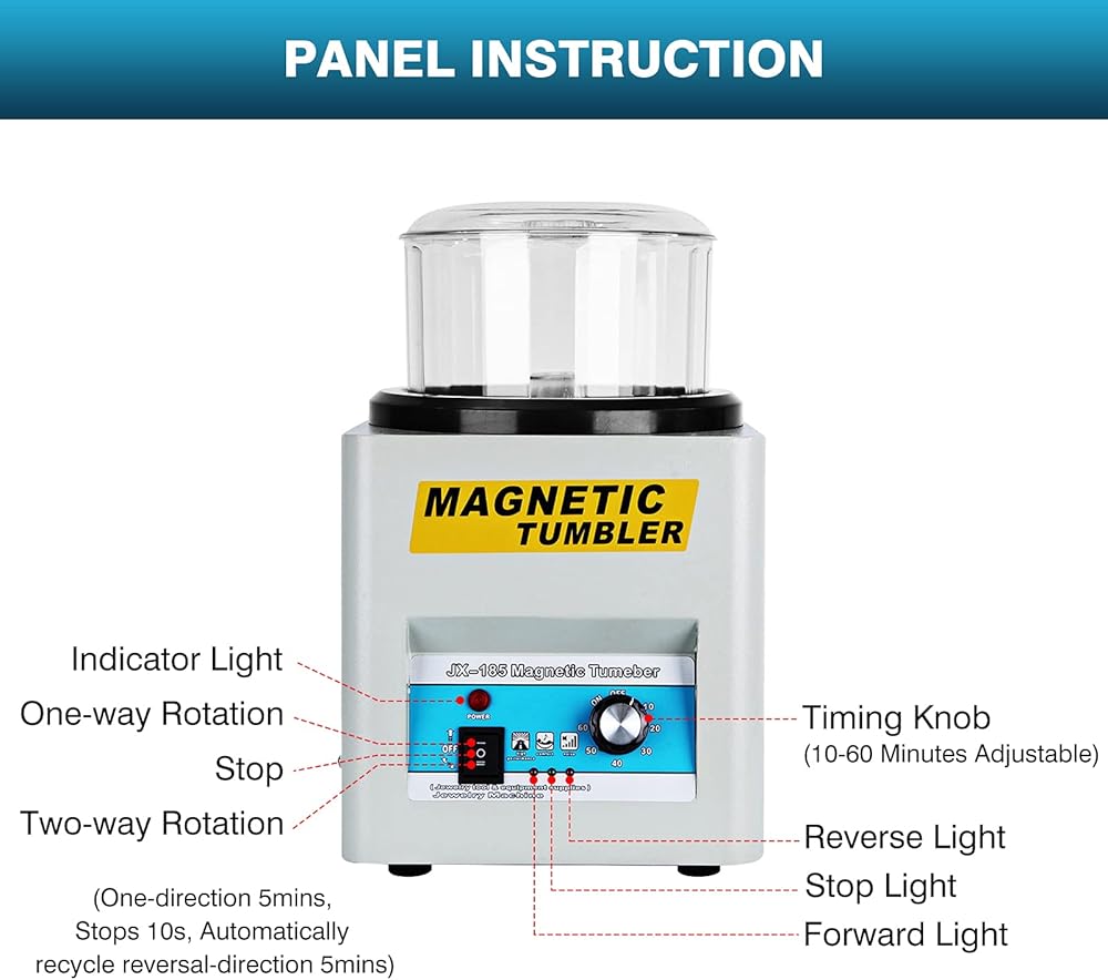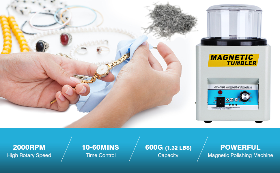 【الاتجاه والوقت قابلان للتعديل】التحكم في الاتجاه: دوران في اتجاه واحد؛ دوران في اتجاهين. التحكم بالوقت: 10-60 دقيقة. يتم الانتهاء من معظم عمليات التشطيب في أقل من 30 دقيقة، ما عليك سوى وضع قطع المجوهرات والدبابيس الفولاذية والماء ومركب الصقل الخاص في الوعاء، ثم اضغط على الزر.