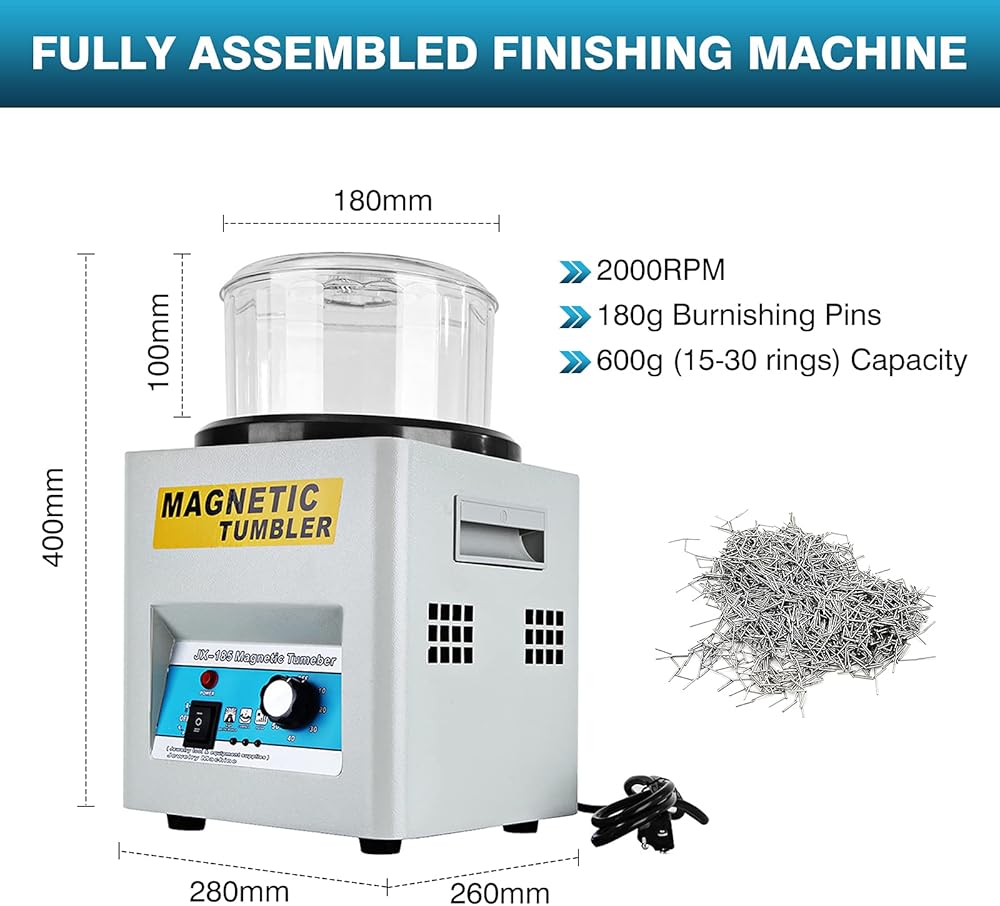 【طريقة تلميع دقيقة وغير ضارة】التدحرج المغناطيسي هو عملية تلميع آلية تقضي تقريبًا على الحاجة إلى قصف السيانيد والتجريد والضرب. يتم تشغيل دبابيس فولاذية صغيرة بواسطة مغناطيس دوار قوي في قاعدة وعاء التشطيب. لا يوجد طريق مسدود، مما يسمح لجميع أجزاء الطحن الكاملة دون أن تتشوه، أو تلحق الضرر بالسطح، أو تؤثر على الدقة.