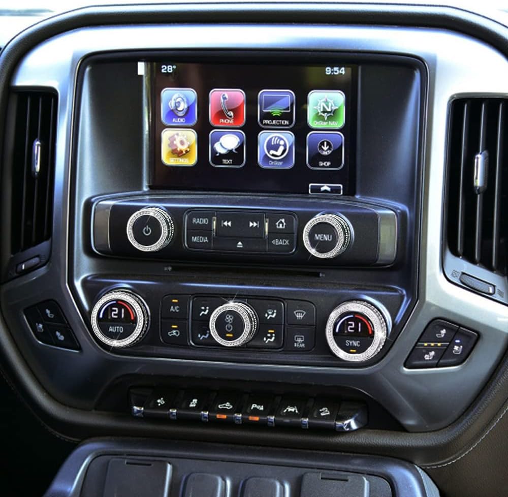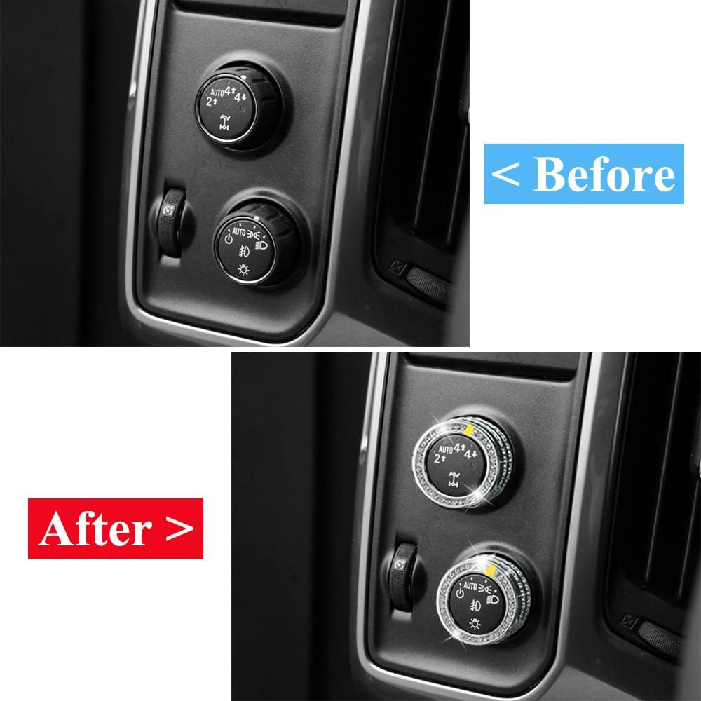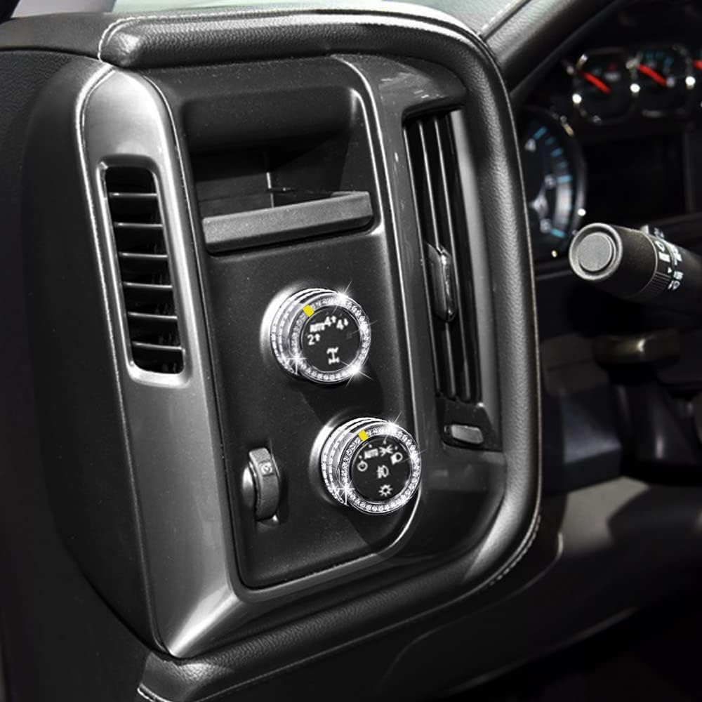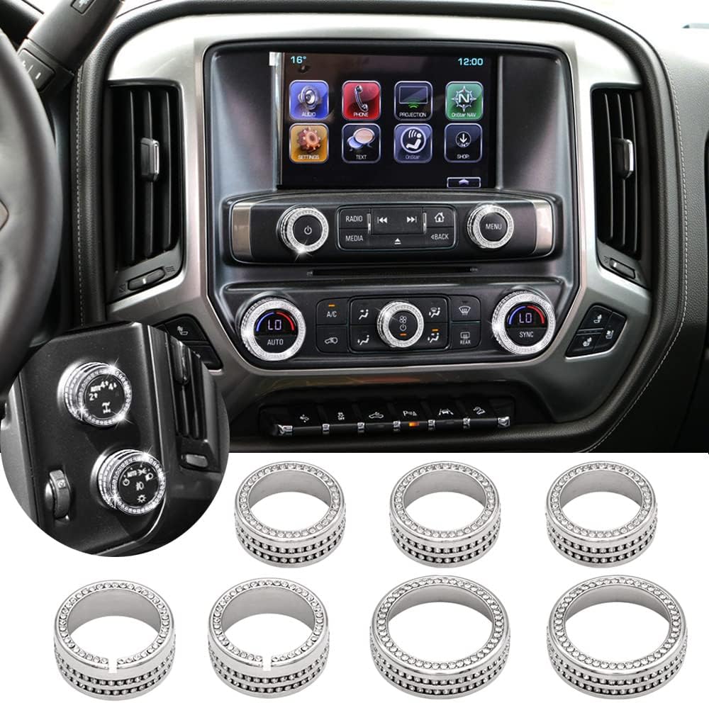 غطاء مقبض راديو بلينغ تيار متردد متوافق مع شيفروليه تشيفي سوبربان تاهو جي إم سي أكاديا يوكون تيرين داش التحكم التلقائي في مستوى الصوت إشارة الانعطاف 4WD مقبض مفتاح الإضاءة زر غطاء حلقة 7 قطع