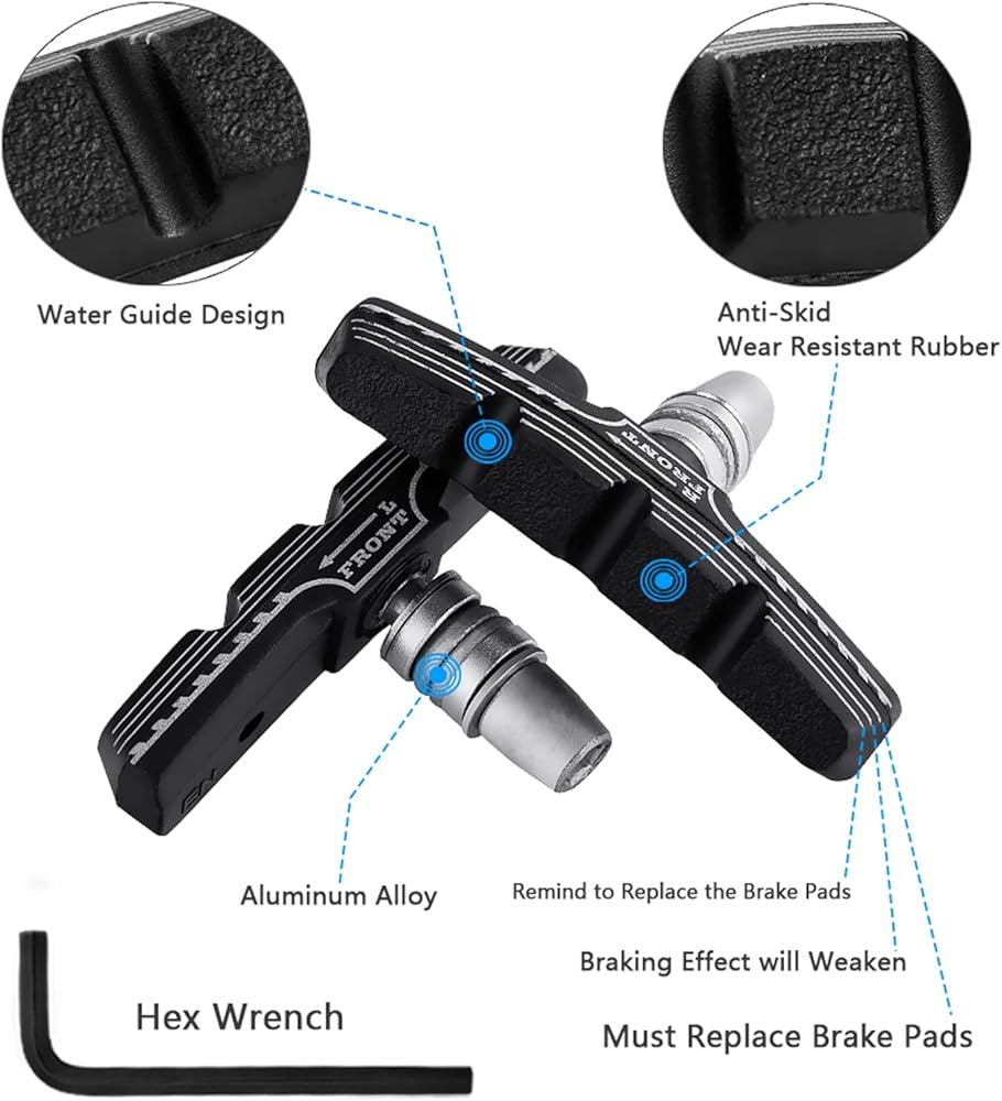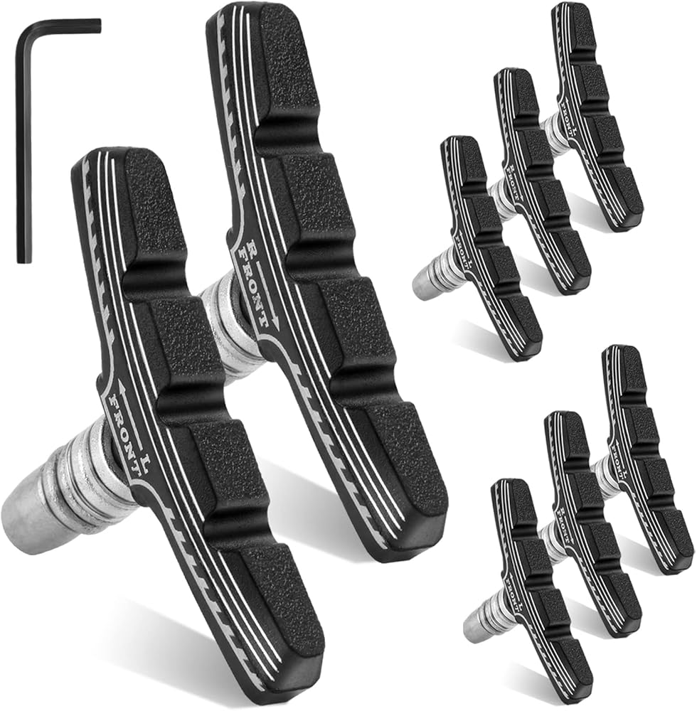 8 قطع من وسادات فرامل الدراجة الفاخرة، وسادات فرامل احترافية للدراجات الجبلية على شكل حرف V، مجموعة مكعبات فرامل الدراجة، تأتي مع مفتاح ربط سداسي قطعة واحدة (4 أزواج)