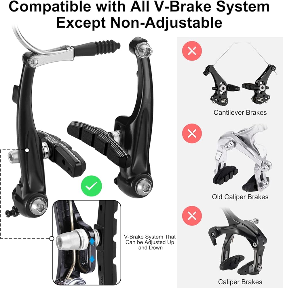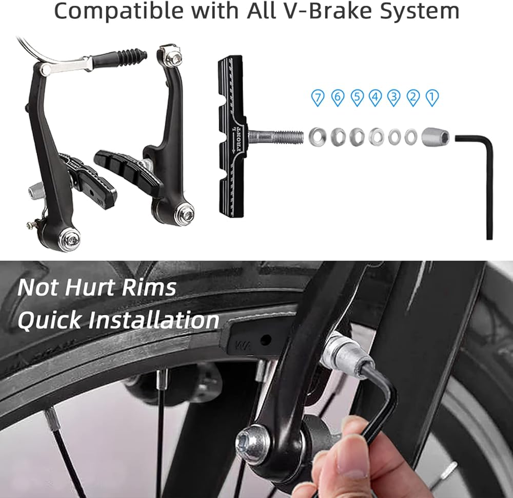 【توافق واسع】 وسادات الفرامل هذه مناسبة للدراجات التي يزيد طولها عن 20 بوصة وجميع أنظمة الفرامل على شكل حرف V، متوافقة مع SRMA/SHIMANO/TEKTRO. الآن ليس عليك الذهاب إلى متجر دراجات، ويمكنك شراء نفس جودة متجر يحمل علامة تجارية معروفة مقابل تكلفة أقل.