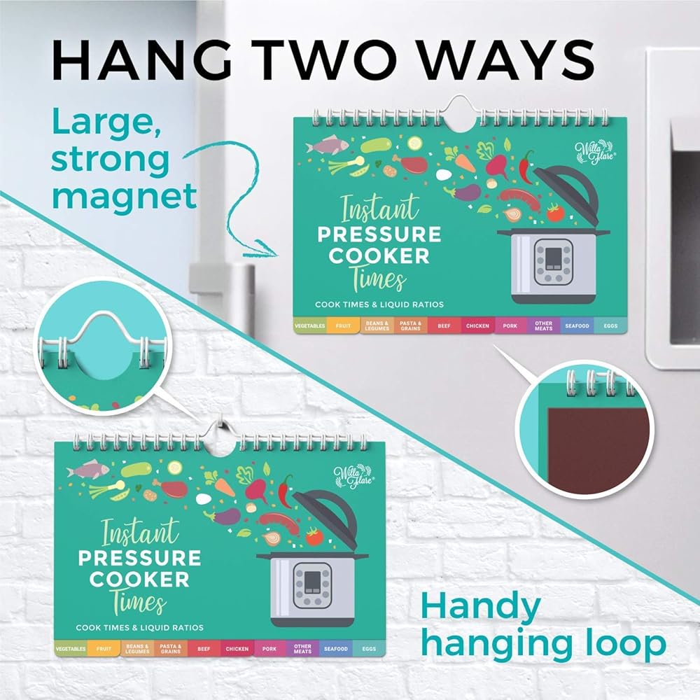 مغناطيس قوي + خطاف تعليق اختياري: يلتصق بقوة على أي سطح مغناطيسي مع مغناطيس قوي إضافي يحافظ على ورقة الغش الخاصة بك في مكانها ويحافظ عليها بقوة. هل تفضل تعليق أغراض مطبخك؟ لقد قمنا بتضمين خطاف مفيد حتى تتمكن من القيام بذلك! مع وجود العديد من الأماكن التي يمكن لصقها أو تعليقها، لن تضطر أبدًا إلى البحث في درج آخر عن دليل قدر الضغط الخاص بك أو البحث عن أوقات الطهي ودرجات الحرارة على هاتف ذكي مملوء بالبكتيريا!