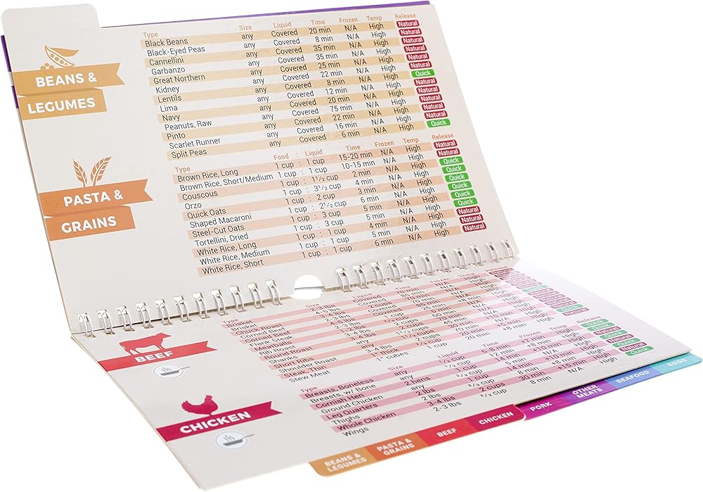 تصميم مخطط حلزوني يوفر المساحة: على عكس ملصقات طباخ الضغط التي تحشر الكثير من النصوص الصغيرة في دليل واحد ضخم، فإن الرسم البياني القلاب المغناطيسي Willa Flare هو آلة موفرة للمساحة مع صفحات متعددة قابلة للقلب. بالإضافة إلى ذلك، فهي مطبوعة على بطاقات لامعة عالية الجودة، لذا يمكن بسهولة مسح الأطعمة الفوضوية مثل تناثر السباغيتي والشحوم دون تزييفها. وهل ذكرنا؟ يمكنك الحصول على 109 مكونات مع أوقات طهي سائلة ومجمدة، بالإضافة إلى الضغط ودرجة الحرارة!