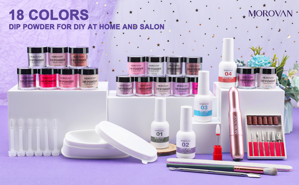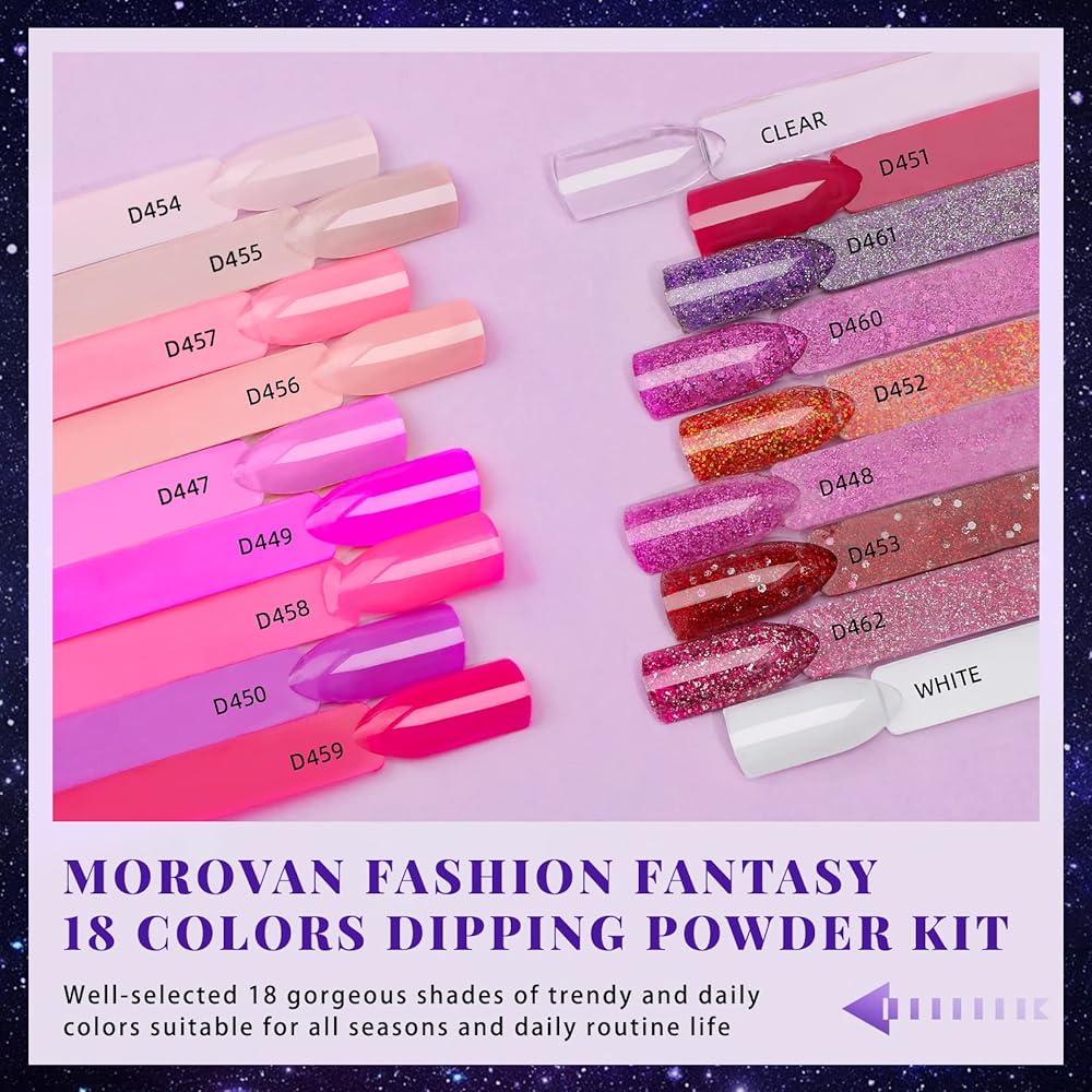 🎀 لا يتطلب علاجًا، موفرًا للوقت: لا يتطلب نظام مجموعة مسحوق الأظافر موروفان معالجة مصباح الأظافر، ويتجنب اسمرار البشرة وتلفها، كما أنه سهل الاستخدام. مجموعة مسحوق الغمس المكونة من 18 لونًا، تم اختيارها جيدًا من 18 لونًا رائعًا من الألوان العصرية واليومية المناسبة لجميع المواسم والحياة الروتينية اليومية. الأظافر الأرجوانية مليئة بالغموض والسحر النبيل، يمكنك استخدام خيالك لإنشاء نمط أظافرك الخاص.