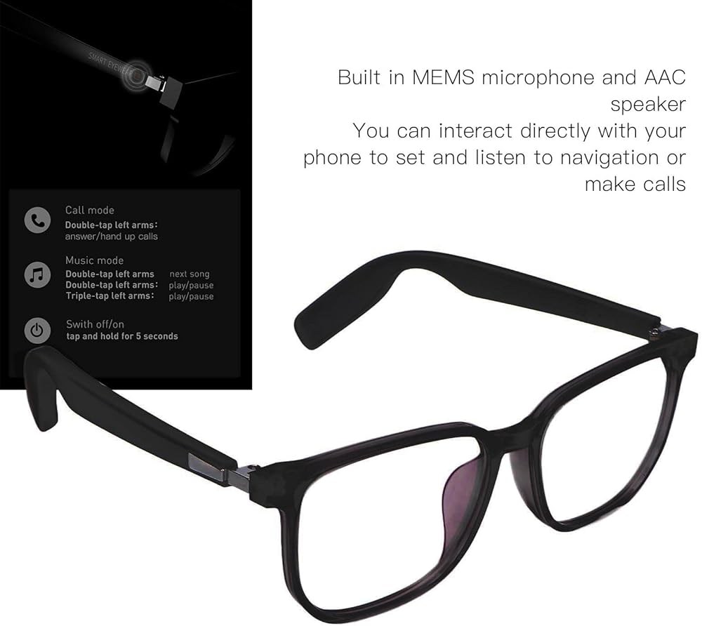 BUILT IN MEMS MIC AND AAC SPEAKER: Open ear speaker glasses with WGP's built in MEMS microphone and AAC speaker, you can interact directly with your phone to set and listen to navigation or make calls on the go.