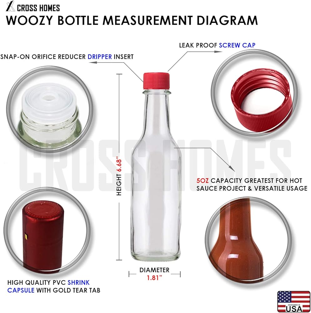• سعة 5 أونصة رائعة لمشروع الصلصة الساخنة والاستخدام متعدد الاستخدامات: حجم الزجاجة - ارتفاع 6.68 بوصة × قطر 1.81 بوصة، السعة - 5 أونصة سائلة. رائعة لتعبئة الصلصة الساخنة محلية الصنع، والزيوت المنزلية، والمستخلصات، والضمادات، والخل، والليمونسيلو، والشراب، والمشروبات الكحولية، والنبيذ، وحتى موزع المر المفضل لديك وأكثر من ذلك بكثير! لا يوجد متاعب في استرداد الأموال وضمان الرضا! نحن نعلم أنك ستحبين مجموعات زجاجات Woozy الخاصة بنا، ولهذا السبب إذا لم تكن راضيًا بنسبة 100%، فيمكنك استرداد أموالك بالكامل دون أي أسئلة! لا يوجد خطر!