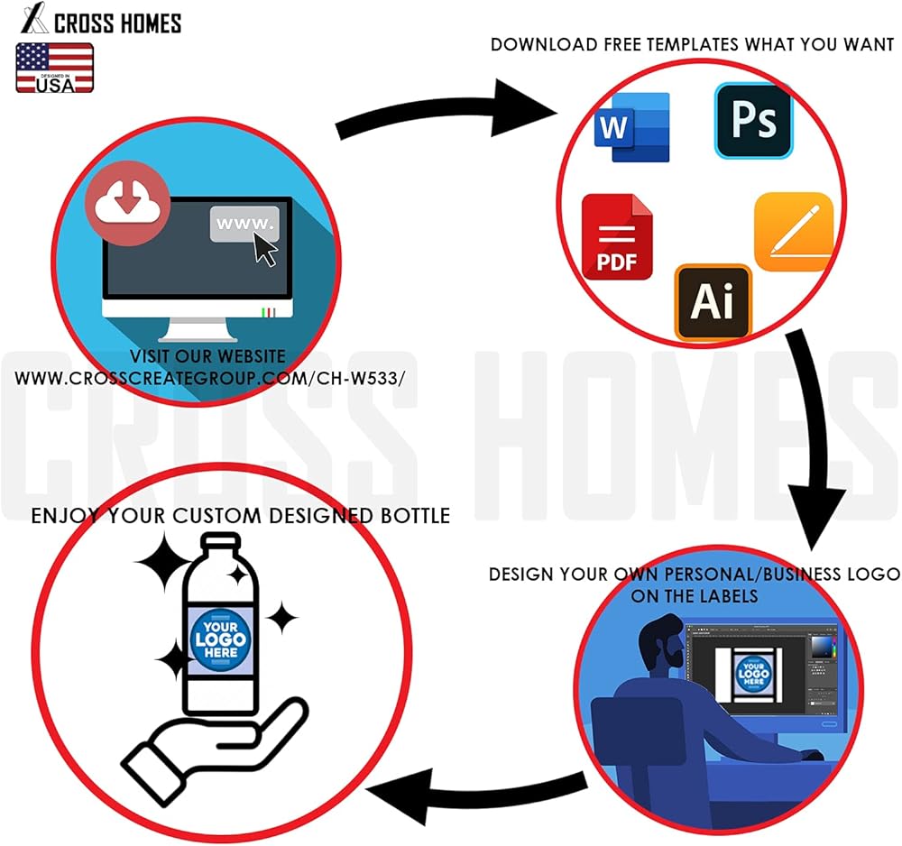 • قم بتصميم وطباعة وتطبيق ملصقاتك المخصصة اللافتة للنظر: تتضمن 45 ملصقًا ورقيًا أبيض فارغًا قابلاً للطباعة (5 أوراق من 9) لطابعات الليزر أو الطابعات النافثة للحبر. حجم مثالي لزجاجات ووزي بوزن 5oz (عرض 6.35 سم × ارتفاع 7.62 سم). تتيح لك ميزة الطباعة إلى الحافة إضافة خلفية كاملة الألوان إلى شعار علامتك التجارية أو اسم المنتج أو العنوان أو الرسالة. ملصقات زخرفية مخصصة بسهولة مع قوالب وتصميمات مضمنة قابلة للتنزيل مجانًا.