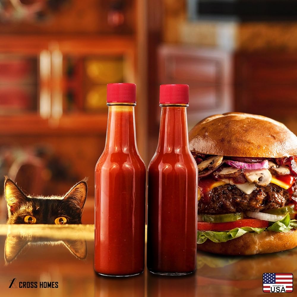 • زجاجات زجاجية عالية التحمل من الدرجة التجارية: التصميم ذو الجدران السميكة يجعل هذه الزجاجات الزجاجية متينة للغاية مع مظهر تجاري احترافي لطيف يشبه المتجر تمامًا مثل أفضل صانعي الصلصة الساخنة والخبراء. جودة عالية، زجاج عالي التحمل، يمكن الاعتماد عليه، وأنيق! قم بتطبيق كبسولة انكماش PVC عالية الجودة مع شريط ذهبي مسيل للدموع بواسطة مسدس حراري أو بخار للحصول على لمسة نهائية أنيقة واحترافية ومقاومة للسرقة.
