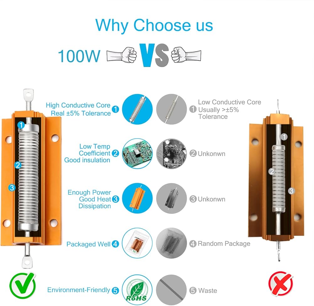• مقاومة الإصلاح: 1R أوم، الطاقة: 100 وات، التسامح: 0.05 ±5%