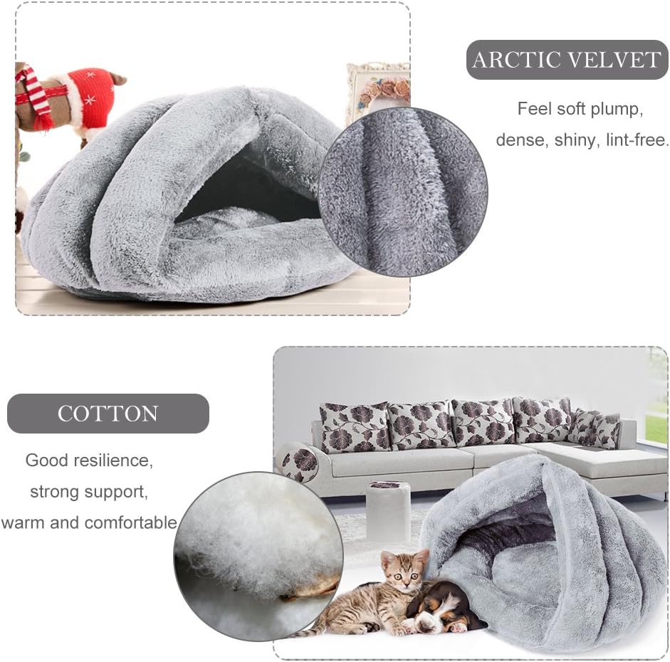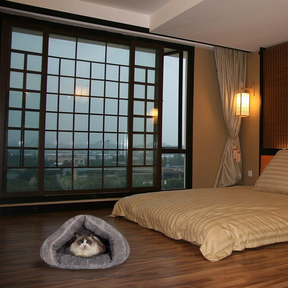 🐕【تهدئة وتخفيف التوتر】: تم تصميم سرير الكهف الصغير الخاص بنا لتوفير شعور بالأمان والاسترخاء لقطتك. يخلق التصميم المغلق إحساسًا بالخصوصية، مما يساعد على تقليل القلق والتوتر، بينما يوفر التصميم الداخلي الفخم بيئة مريحة وهادئة تعزز النوم المريح. يعد هذا مفيدًا بشكل خاص للقطط التي قد تكون خجولة أو منزعجة بسهولة.