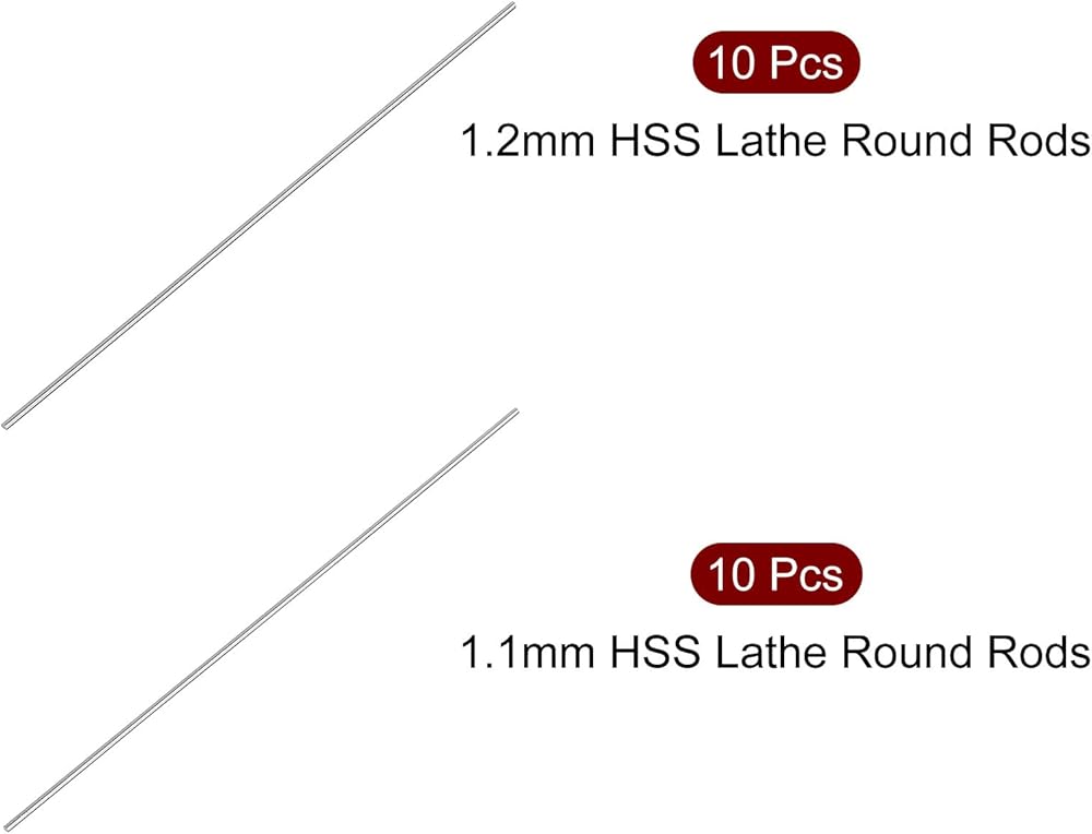 • Specifications: Diameter: 1.1mm / 0.04", 1.2mm / 0.05", diameter accuracy: +/-0.008mm / 0.0003"; length: 100mm / 3.93". High-speed steel rod is with combination of hardness and toughness for wear resistance, hardness HRC61~63