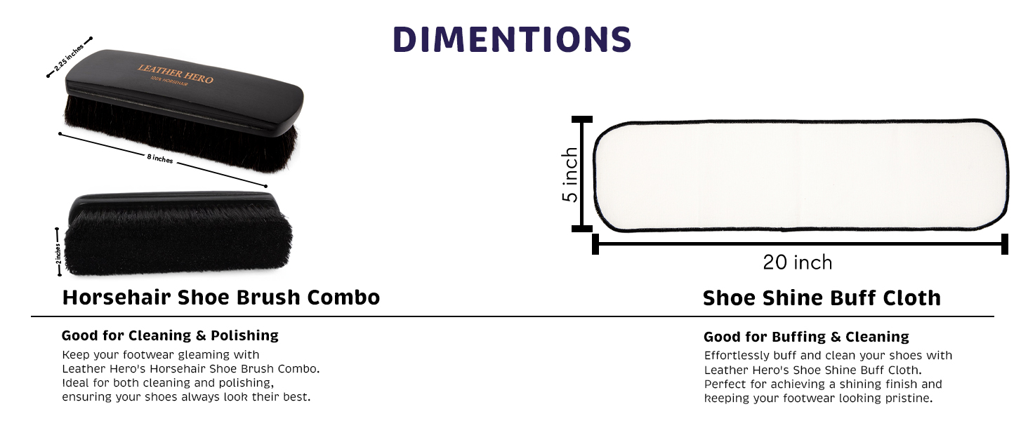 • استخدامات متعددة: مناسبة لجميع أنواع الأحذية، بما في ذلك الأحذية الجلدية والأحذية طويلة الرقبة وأحذية الفساتين، هذه المجموعة الشاملة مثالية لروتين العناية بالأحذية الشخصية والمهنية.