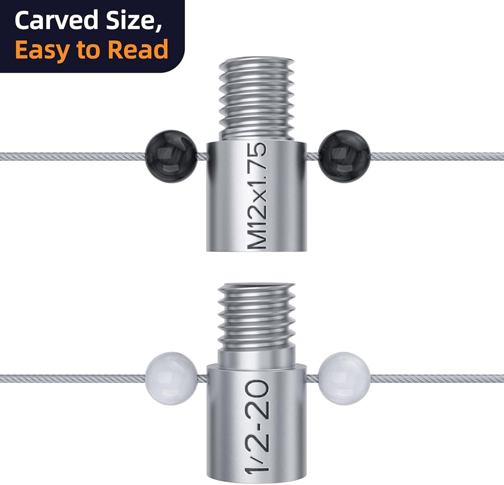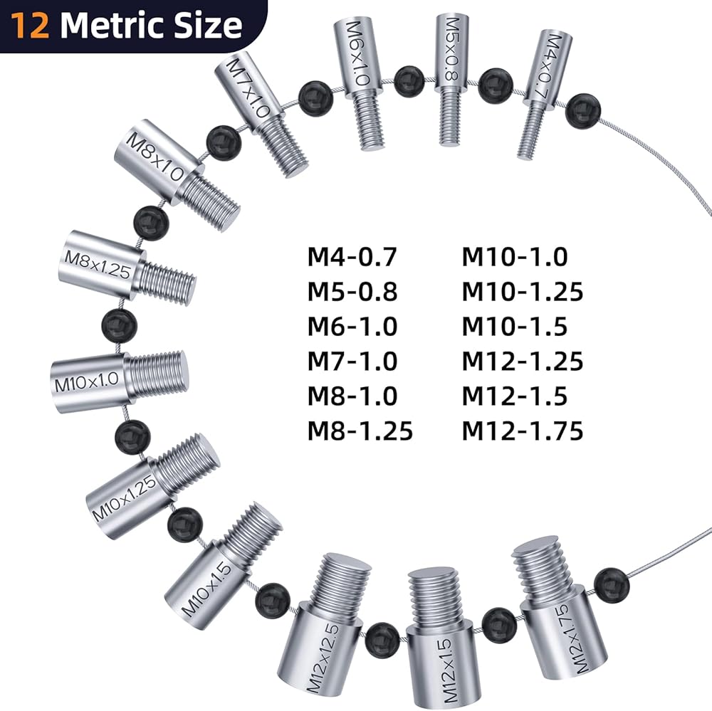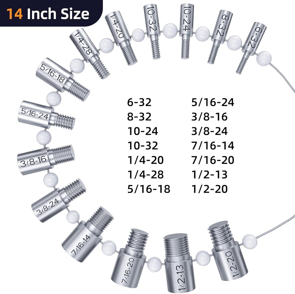 مدقق خيط الصواميل والمسمار القابل للفصل: جميع سلاسل قياس الترباس المترية وسلاسل sae معًا على كابل فولاذي واحد مع نهايات قابلة للفصل لسهولة خلع الاستخدام الشائع والاختبار، وخطاف للتعليق على الجدران أو البنطلون، معيار مدقق خيط مفيد حقًا و متري لتأخذه معك.