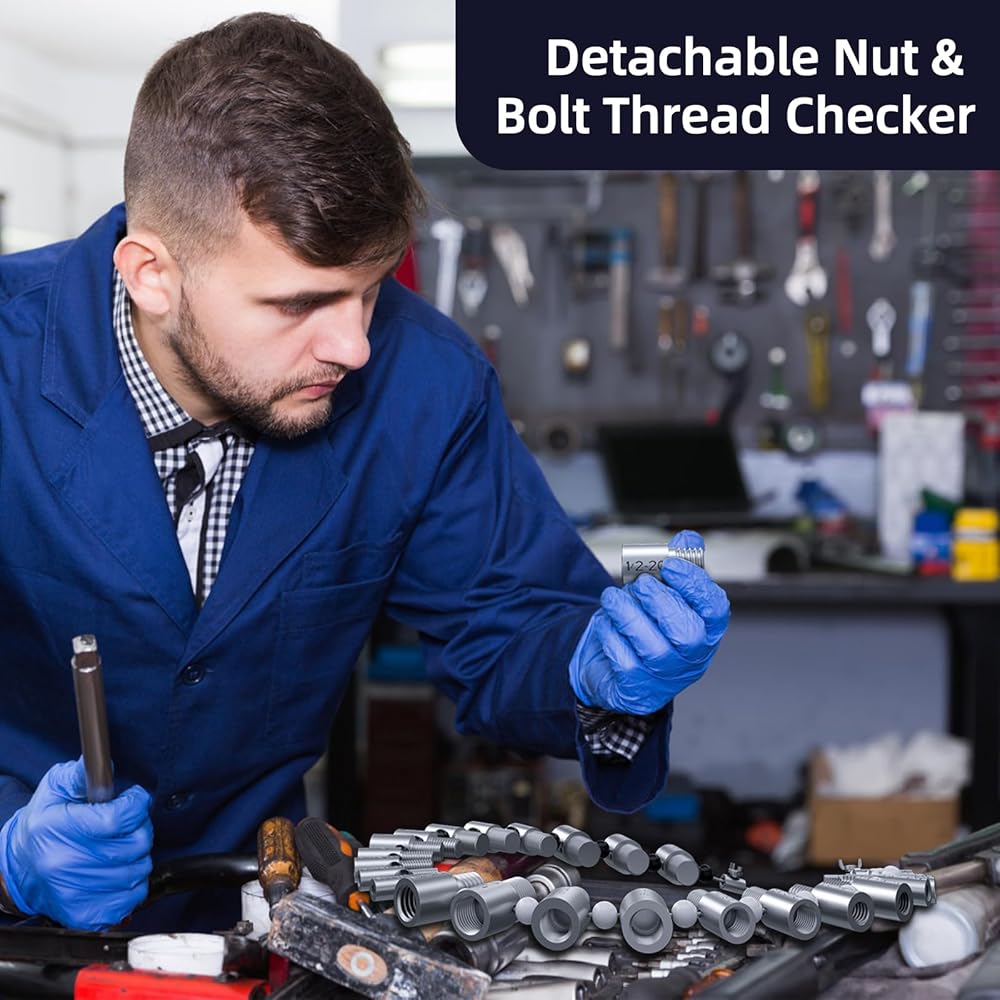 مقياس معرف البراغي والصواميل - وفر وقتك في متجر الأجهزة: يعد مقياس سن اللولب أداة ميكانيكية مريحة لفحص حجم البراغي والصواميل ودرجة الخيط والتحقق منها بدقة وسرعة. يوفر مقياس الصمولة والمسمار الكثير من الوقت في متجر الأجهزة! يعمل معرف البراغي والصواميل بشكل جيد للمشروعات المنزلية أو الإصلاحات، أو ورشة العمل، أو المرآب، أو الميكانيكي. يستخدم مقياس الخيط بشكل رئيسي عند البحث عن الصواميل والمسامير المطلوبة، وفرز دلاء الصواميل والمسامير في صناديق الأجزاء، أو بناء الدراجات أو الدراجات النارية مع جهاز فحص خيط المسمار هذا.