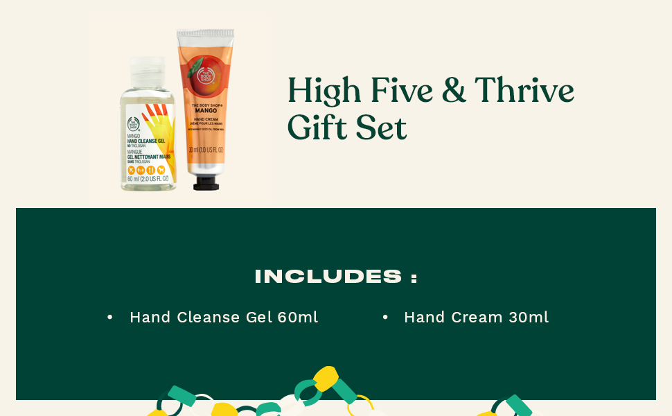 Everybody needs cleansing on the go, that's why this High Five & Thrive hand care gift set is such a perfect stocking stuffer or Secret Santa Gift. Featuring a hand cleanser and hand cream, and scented with passionate mango, it's a perfect gift idea for Mom, Grandma, Grandmother, Aunt, friend, sister or even as a holiday exchange gift for a colleague. Gift with joy this holiday season and give a super pampering skincare treat!