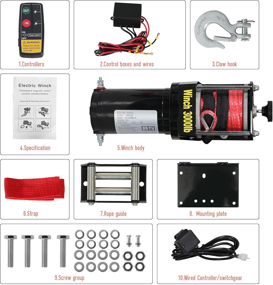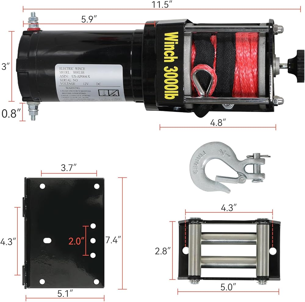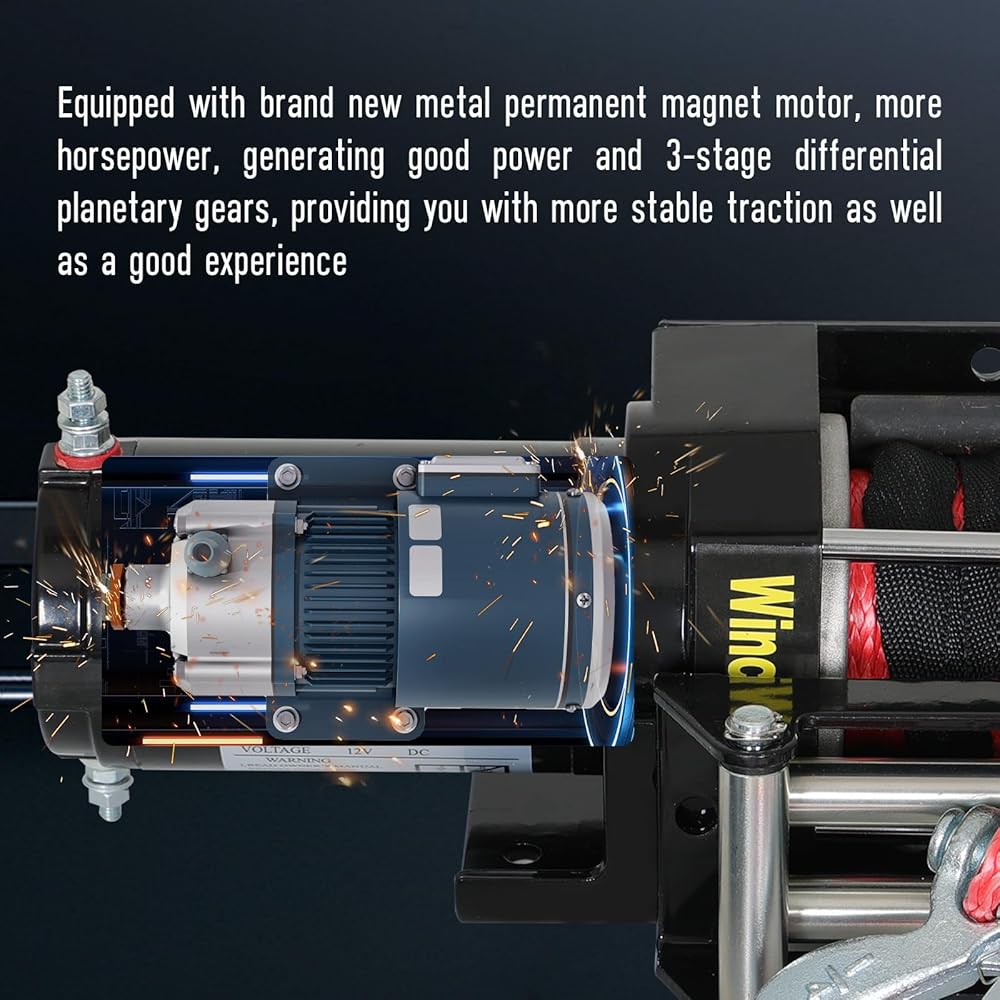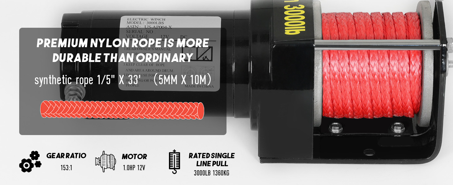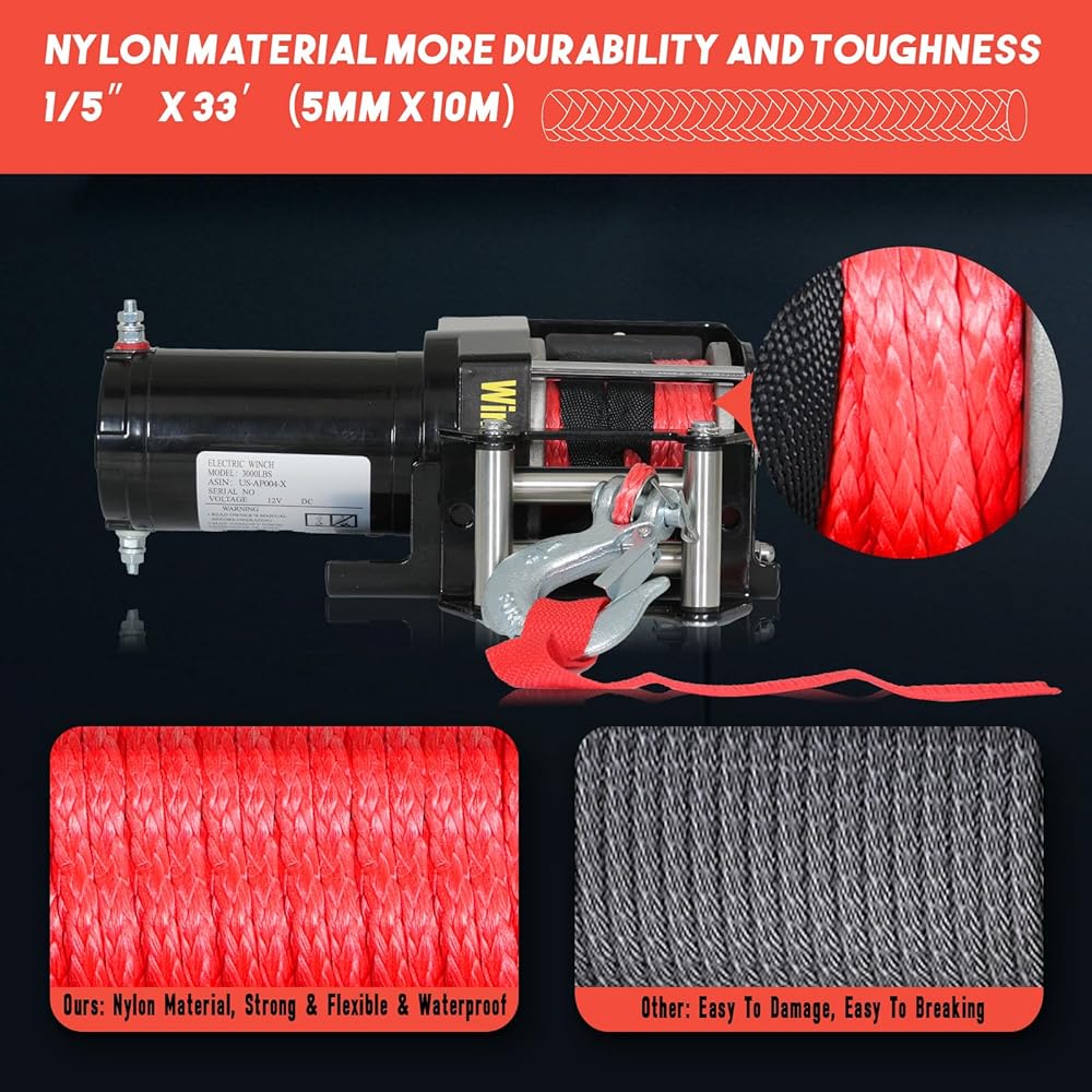 【مادة ممتازة】: مجهزة بحبل ونش من النايلون مقاس 1/5 بوصة × 33 بوصة (5 مم × 10 متر) لجعل الرافعة الكهربائية أكثر قوة وأداء مرونة عالية، مع مقاومة أقوى للتآكل وصلابة، يمكنها تحمل الطقس الحار والأيام الغائمة الرطبة، بما يكفي لتلبية أي عملية سحب خارجية.