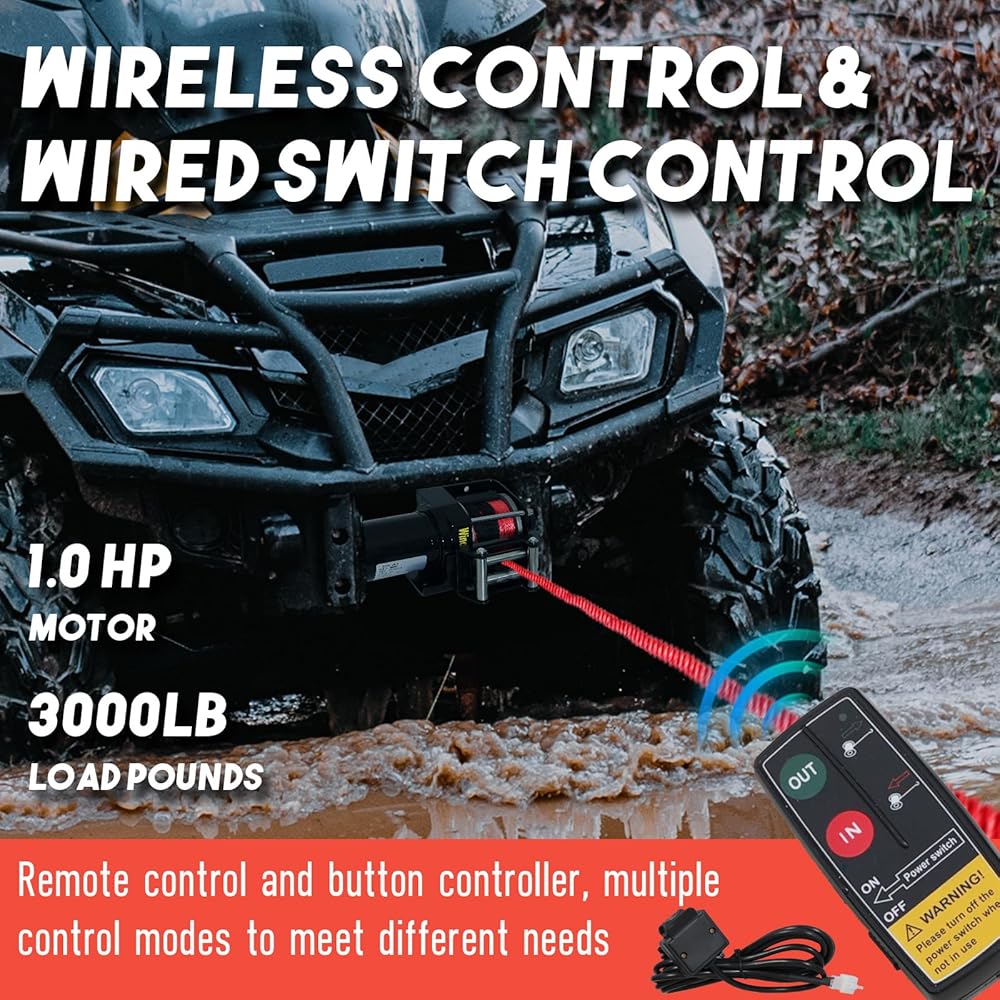 【سهلة الاستخدام】تحتوي هذه الونش الكهربائية على وضعين للتشغيل: جهاز تحكم عن بعد لاسلكي أو مفتاح سلكي. يساعد جهاز التحكم عن بعد اللاسلكي سهل الاستخدام ومتكامل الميزات على تشغيل عملية الاسترداد ضمن نطاق فعال يبلغ 50 قدمًا. يمكن استخدام أجهزة ترحيل إضافية مزودة بأزرار تشغيل/إيقاف بمجرد ربطها بالمشبك الأبيض لوحدة التحكم.