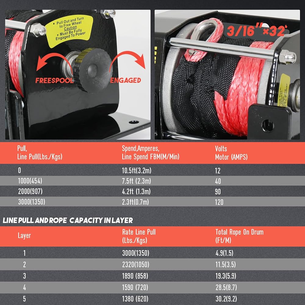 【كامل المواصفات】 مصمم لـ ATV/UTV، يتمتع هذا الونش الكهربائي بقوة سحب تزيد عن 3000 رطل، ويوفر محرك مغناطيسي دائم 12 فولت تيار مستمر مع نظام تروس كوكبي 153:1، وله سرعة خط تبلغ 2.3 قدم/دقيقة مع حمولة كاملة و10.5 قدم/دقيقة بدون حمولة كاملة.