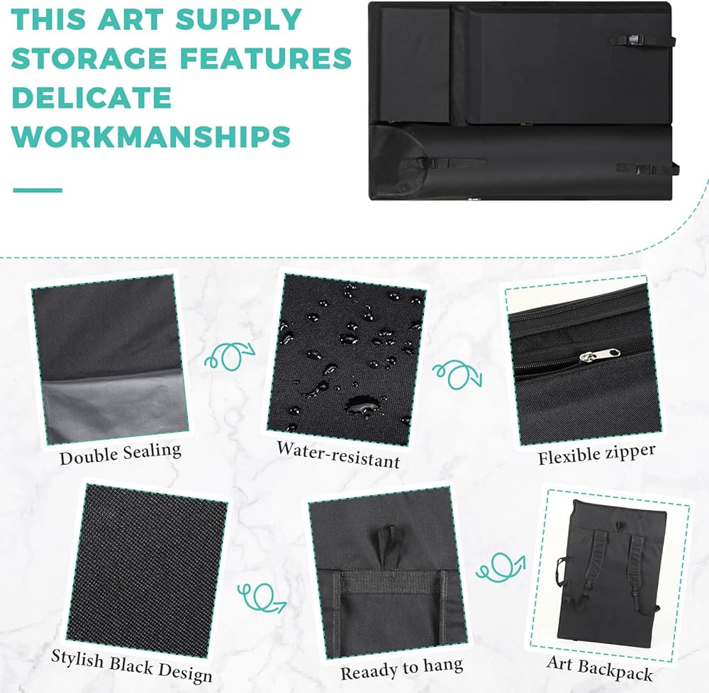 Artist portfolio case is multifunctional, with pockets in different functions, which can hold your paintbrushes, canvases, drawing boards and so on.