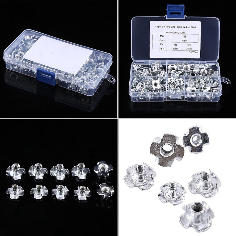 طقم صواميل T بأربعة شوكات، 90 قطعة من الفولاذ الكربوني M3/M4/M5/M6/M8 أربع صواميل T شوكات، مجموعة متنوعة من صواميل T الأربعة للأثاث الخشبي وتسلق الصخور وحاملات الخزائن