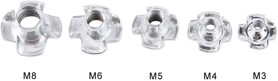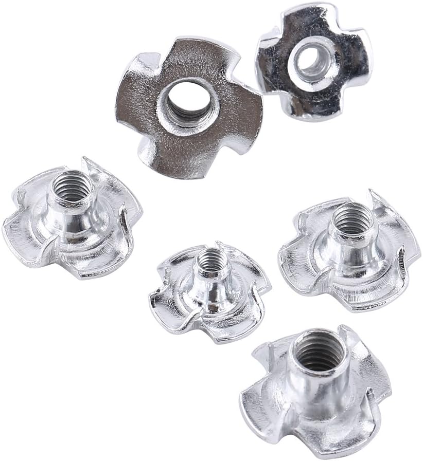 SCOPE OF APPLICATION: These nuts are used to provide a strong, reliable and easy to fit threaded socket in wood and chipboard. This four-pronged T nuts kit is great for professionals, amateurs, repair men, woodworking, construction and so on.