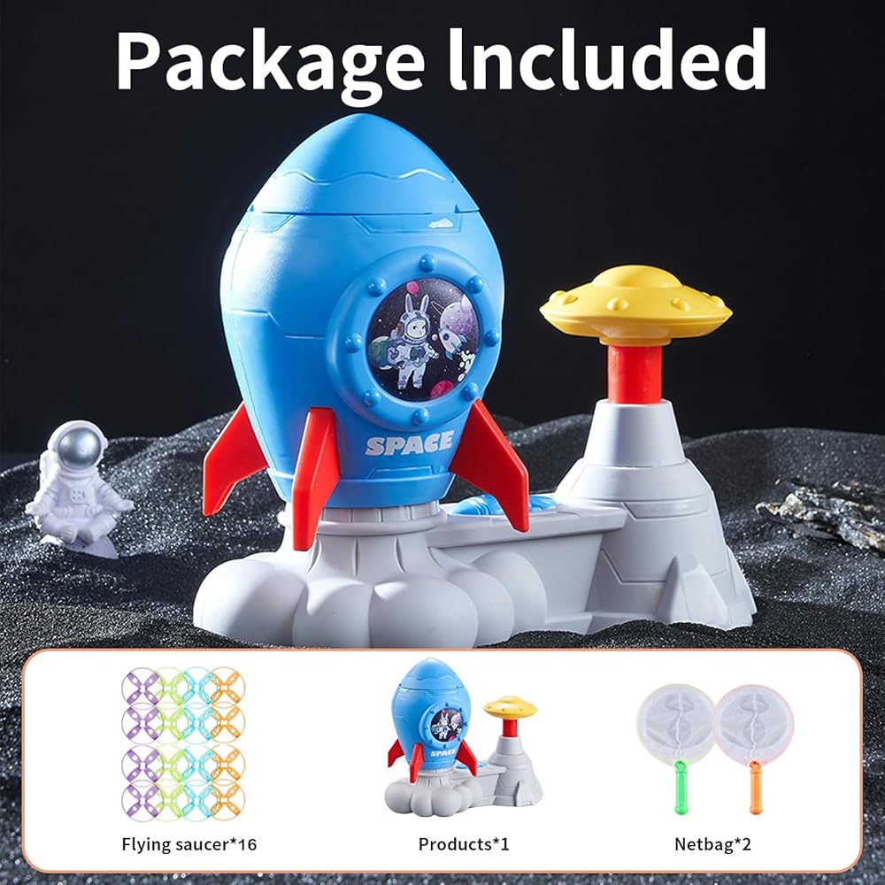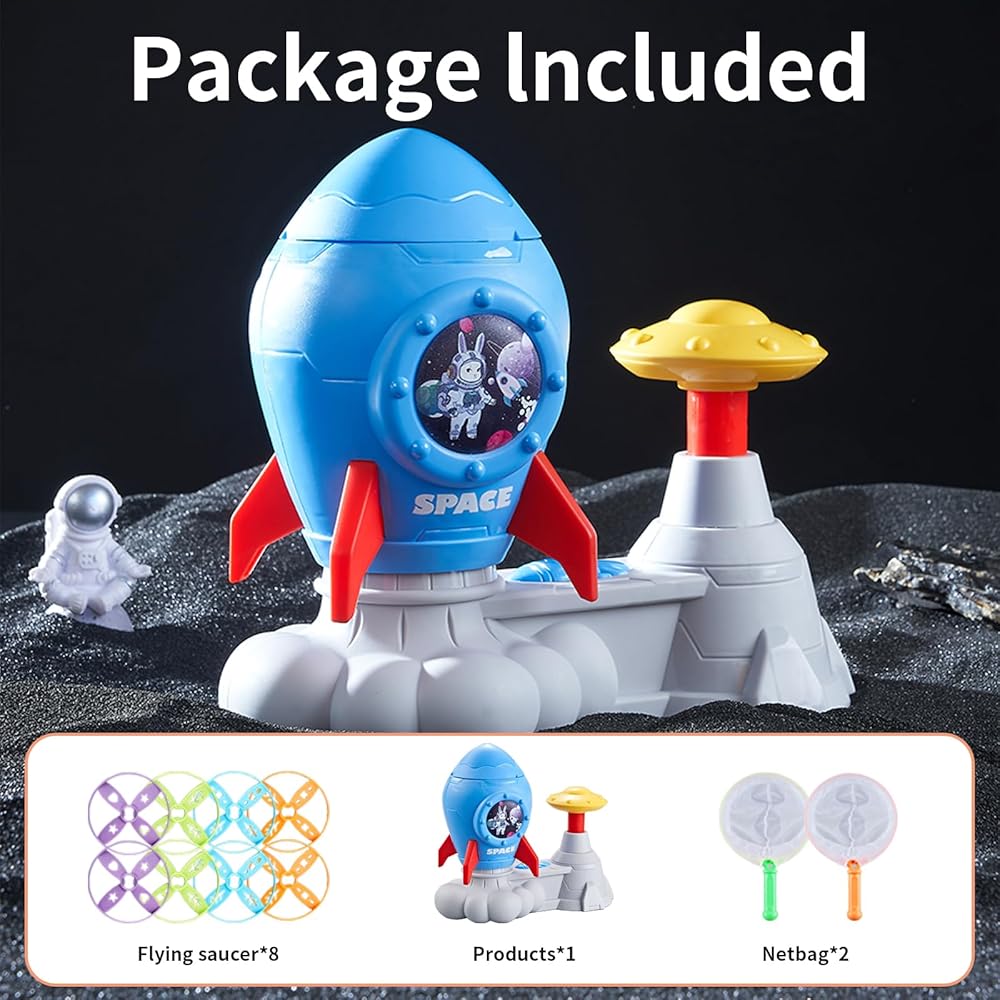 【هدية مثالية للأطفال من سن 4 إلى 12 عامًا】لعبة القرص الدوار الطائر لقاذف الصواريخ ستجعل الأنشطة الخارجية للأطفال أكثر نشاطًا وستجلب الفرح والإثارة للأطفال. إنها هدية مثالية للأعمار من 4 5 6 7 8 9 10 11 12 عامًا، وللأولاد والبنات في أعياد الميلاد والكريسماس وعيد الأطفال والهالوين ورأس السنة الجديدة.