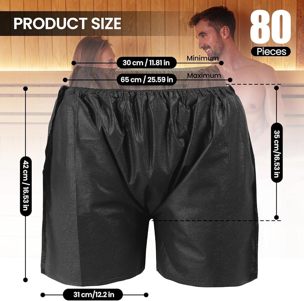 Joengkors 80 قطعة شورت بوكسر سبا للرجال للاستعمال مرة واحدة، ملابس داخلية سوداء غير منسوجة للرجال للاستعمال مرة واحدة، معبأة بشكل فردي للاستخدام مرة واحدة، سراويل ملاكمة ساونا للسفر والتدليك