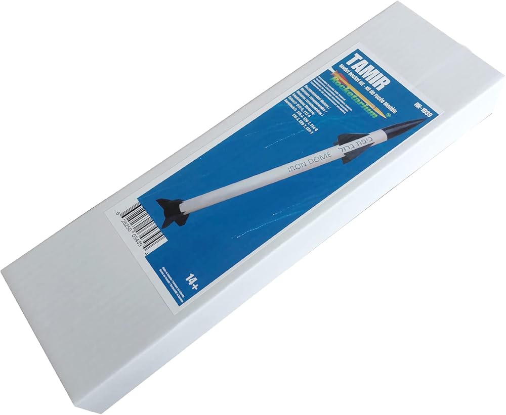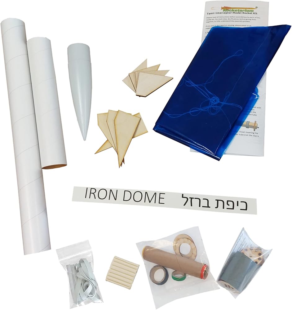 This is the scale model kit of Tamir Interceptor Missile, which is used in "Iron Dome" air defense system. This rocket kit comes complete with laser cut rings and fins, high-quality tubes and includes plastic nose cone, ejection baffle and 18" pre-assembled plastic parachute. This rocket requires 3/16" Launch Rod and compatible launch system. Requires (not included) Assembly, Wood glue, hobby knife, sandpaper, masking tape, primer and paint needed to build this rocket. Launch system with 3/16" Launch rod, Launch Controller and Rocket Motors needed to launch this rocket and are not included. The following rocket motors can be used:D12-5, E12-6, E15-7, E20-7, F44-8, E18-7, E28-7, F24-7