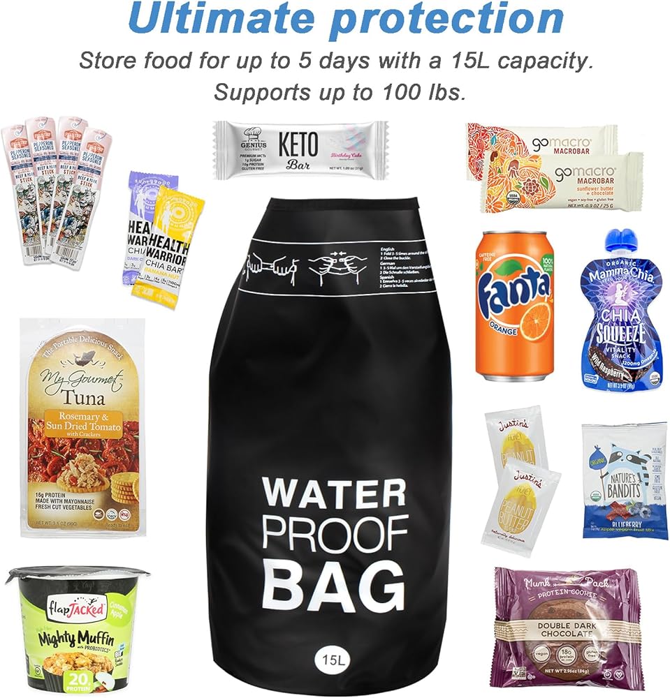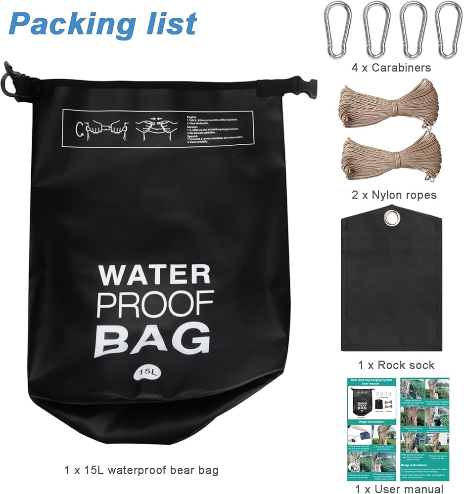 Waterproof: The 15L bear bag is waterproof, keeping your food dry even in wet conditions.