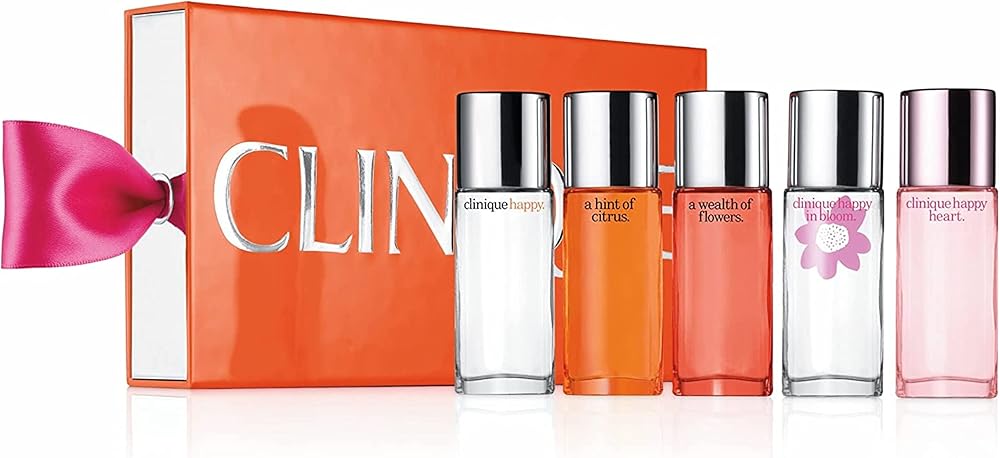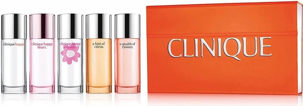 تتضمن مجموعة عطور Clinique Hints of Happy ما يلي: Happy Happy Heart Happy in Bloom Happy Limited Edition "A Hint of Citrus" جميع العناصر عبارة عن بخاخات و0.24 أونصة / 7 مل، كل قطعة بحجم مناسب للسفر، هذه المجموعة التي يمكنك ارتداؤها وستكون سعيدًا يشتمل على رذاذ عطر Clinique Happy الجميل الذي يمكنك أخذه إلى أي مكان ومن المؤكد أنه سيجعلك تبتسم. واصل تجربتك السعيدة مع ثلاث روائح سعيدة أخرى تتراوح من المشرقة والزهرية إلى الرومانسية والمنعشة. تشتمل المجموعة على رذاذ عطر كلينيك هابي، 0.24 أونصة/7 مل، رذاذ عطر كلينيك هابي هارت، 0.24 أونصة/7 مل، رذاذ عطر كلينيك هابي إن بلوم، 0.24 أونصة/7 مل، رذاذ عطر كلينيك هابي بتلميح من الحمضيات، 0.24 أونصة/7 مل