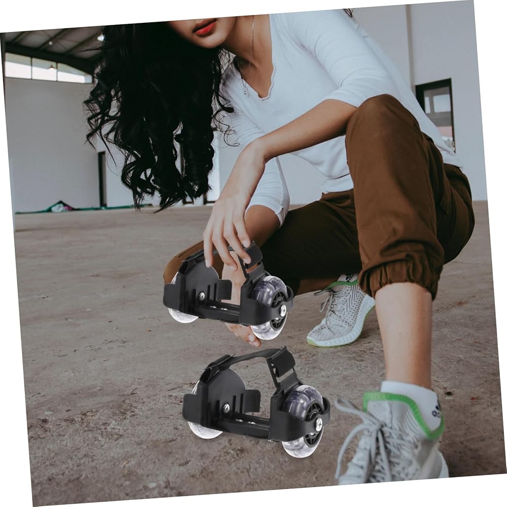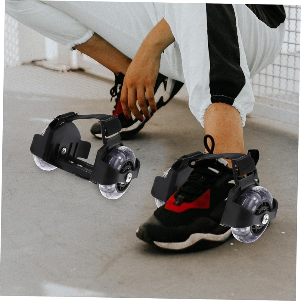 Sneaker heel wheels-- when your body loses balance, you can brake and walk safely putting your toes down.