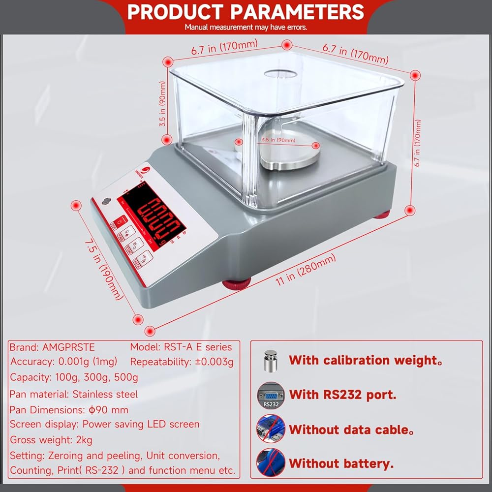 ➤دقة عالية الدقة: يتميز ميزان الوزن الإلكتروني بدقة عالية تبلغ 0.001 جرام. لضمان الدقة، يتميز مقياس الجرام بمستوى مدمج؛ أقدام التسوية القابلة للتعديل؛ إنذار الزائد. إشارة الخطأ والمعايرة الخارجية. وقت التسخين المسبق: 3-15 دقيقة، وقت التثبيت: ≥5 ثانية. يحتوي الميزان أيضًا على شاشة LCD كبيرة وسهلة القراءة وعالية الوضوح.